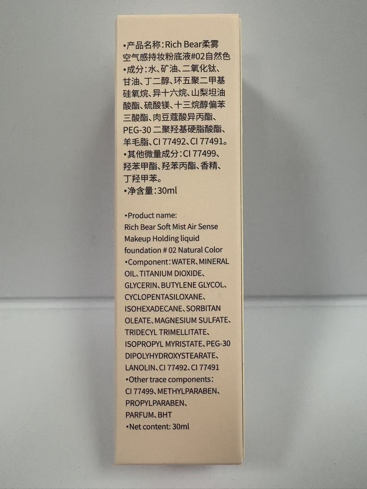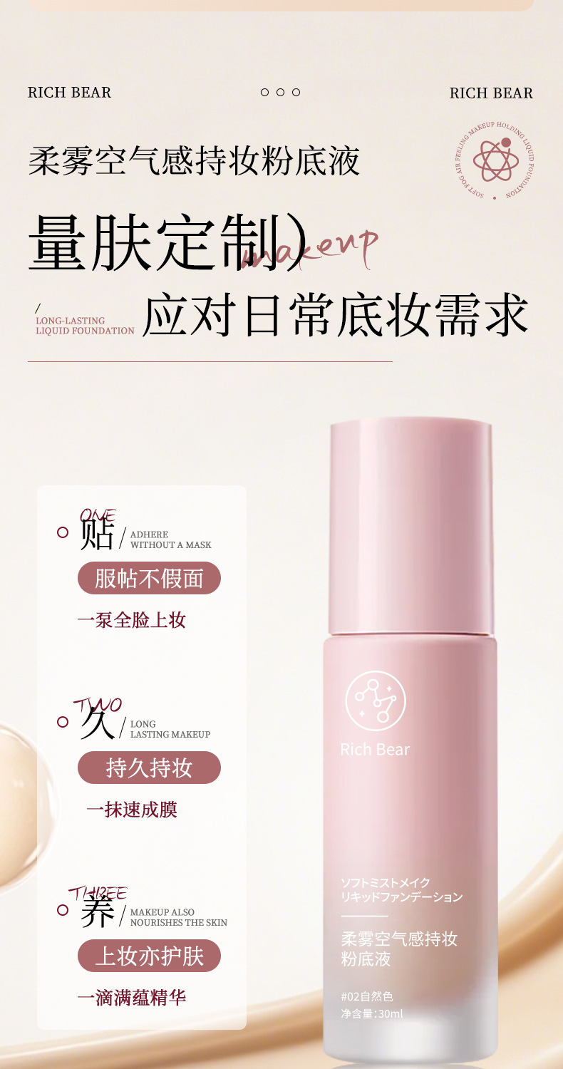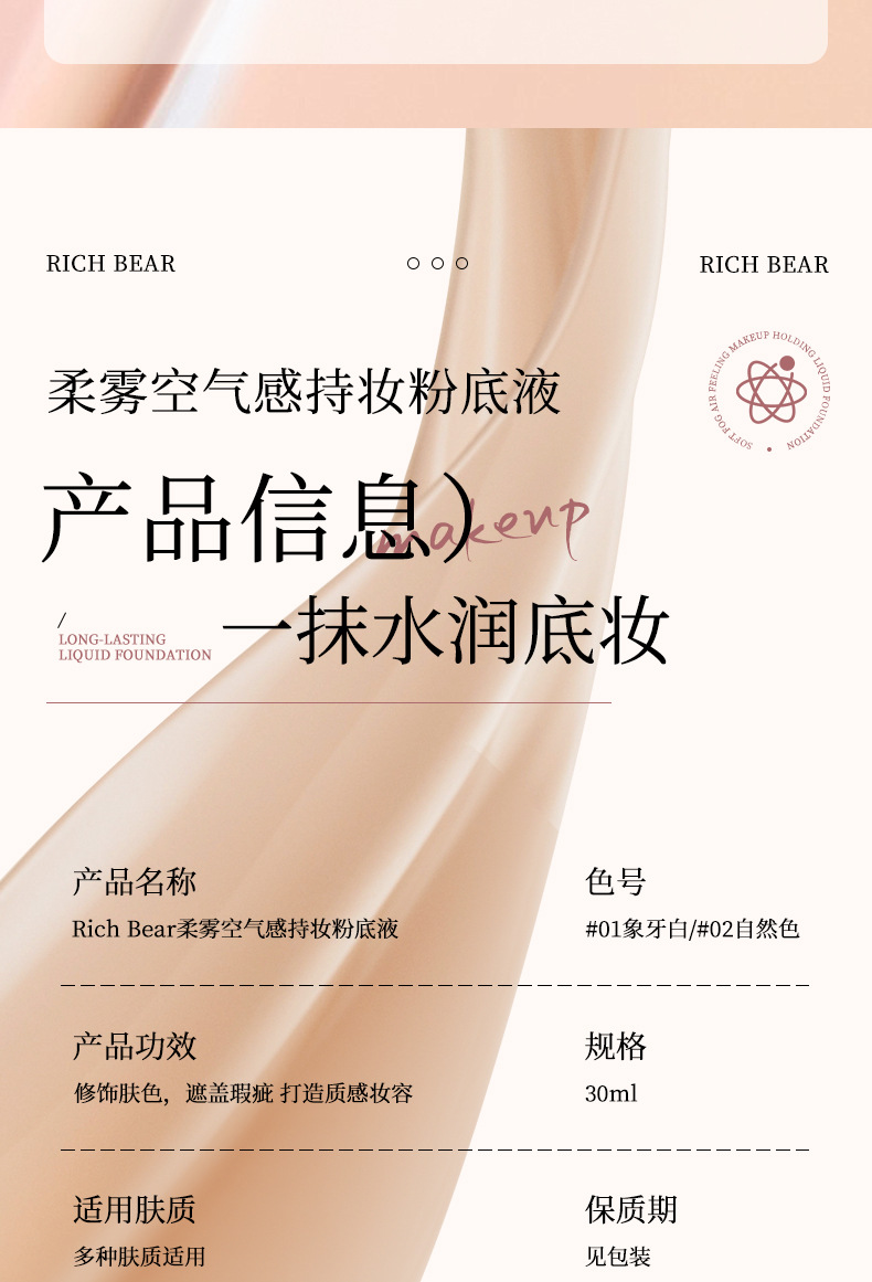 产品名称 Rich Bear柔雾空气感持妆粉底液