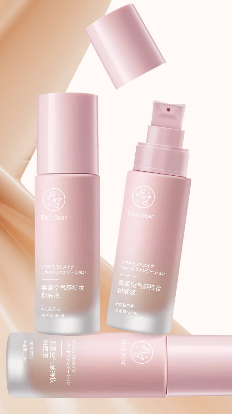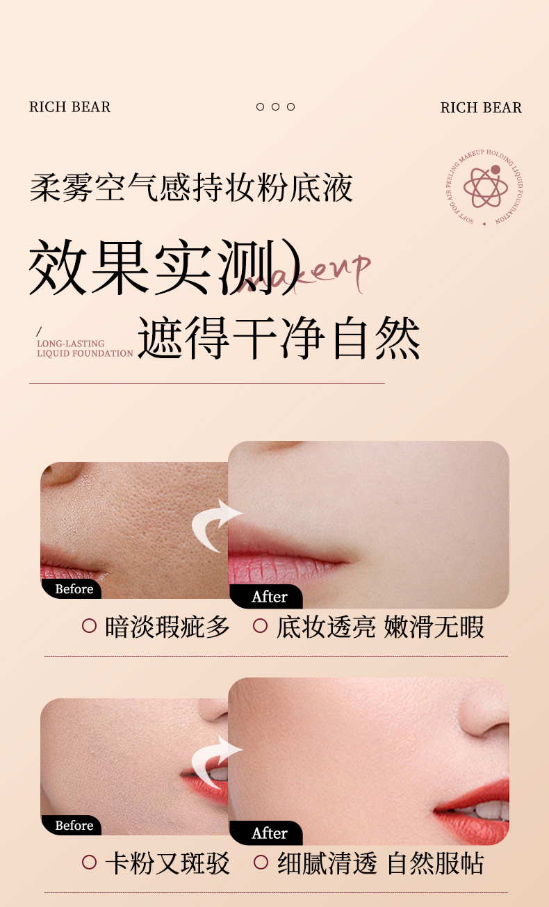 RichBear柔雾空气感持妆美肌粉底液混干油皮水润轻薄自然遮瑕粉底