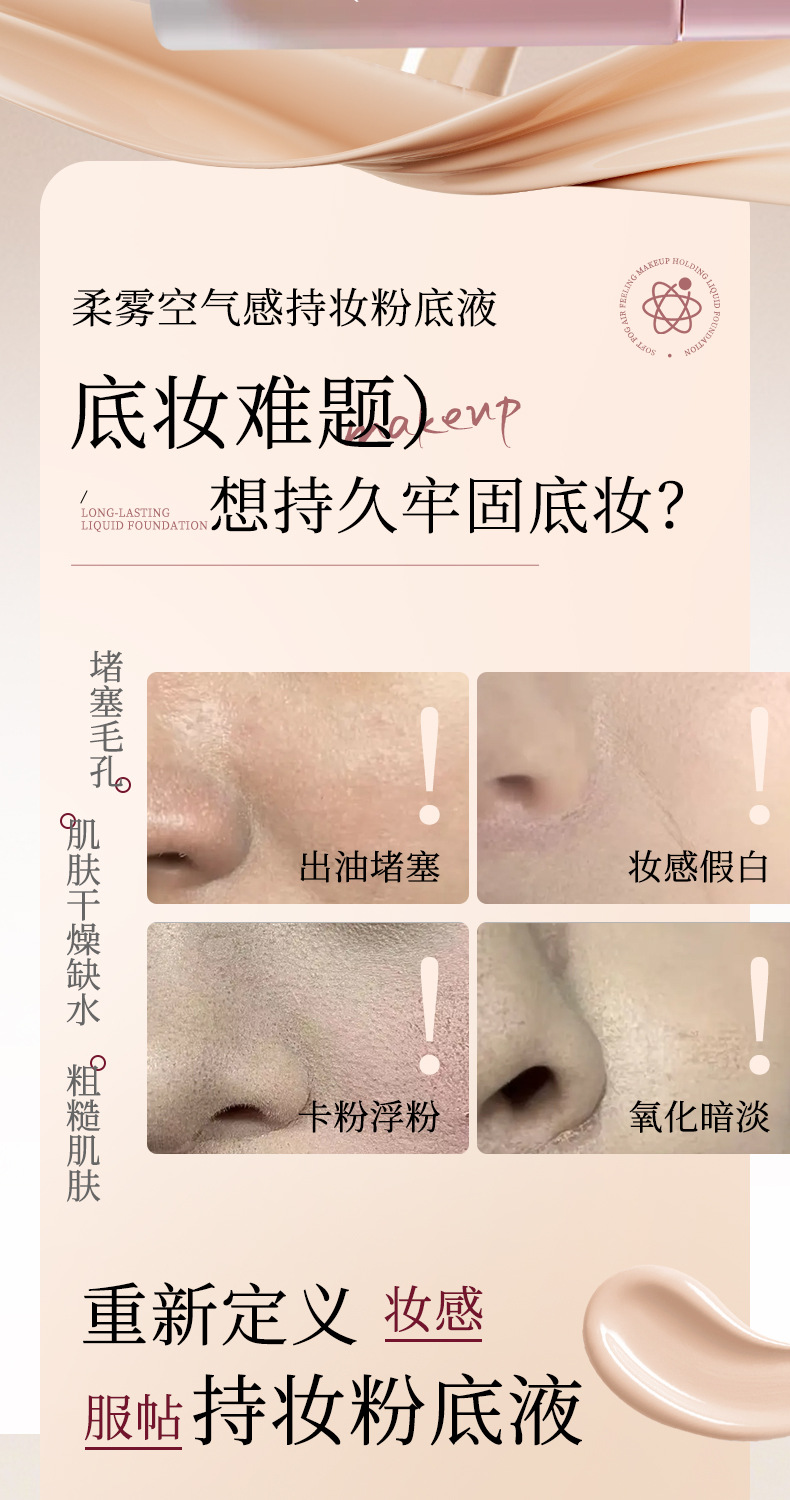 小瓶入りリキッドファンデーション、ソフトミスト、長持ち、落ちにくい、保湿、オイルコントロール、コンシーラー、防水、汗に強い、中国語と英語対応、海外貿易、越境