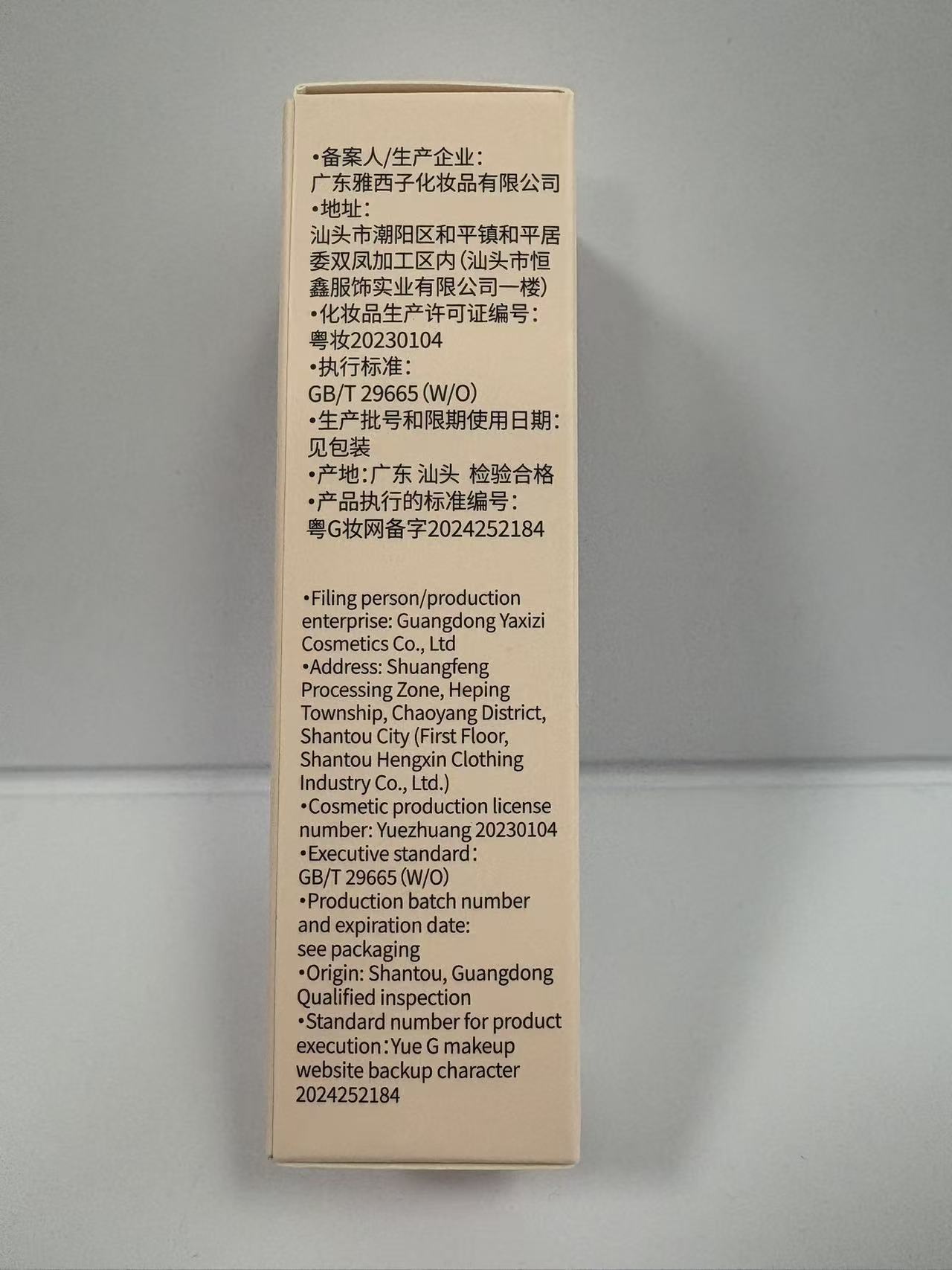 生产许可证号 粤妆20210081