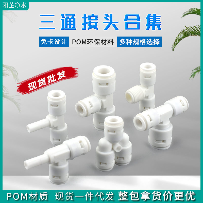 净水器配件亿星免卡快接头2分Y型三通323正T型侧插栓3分快插中丝