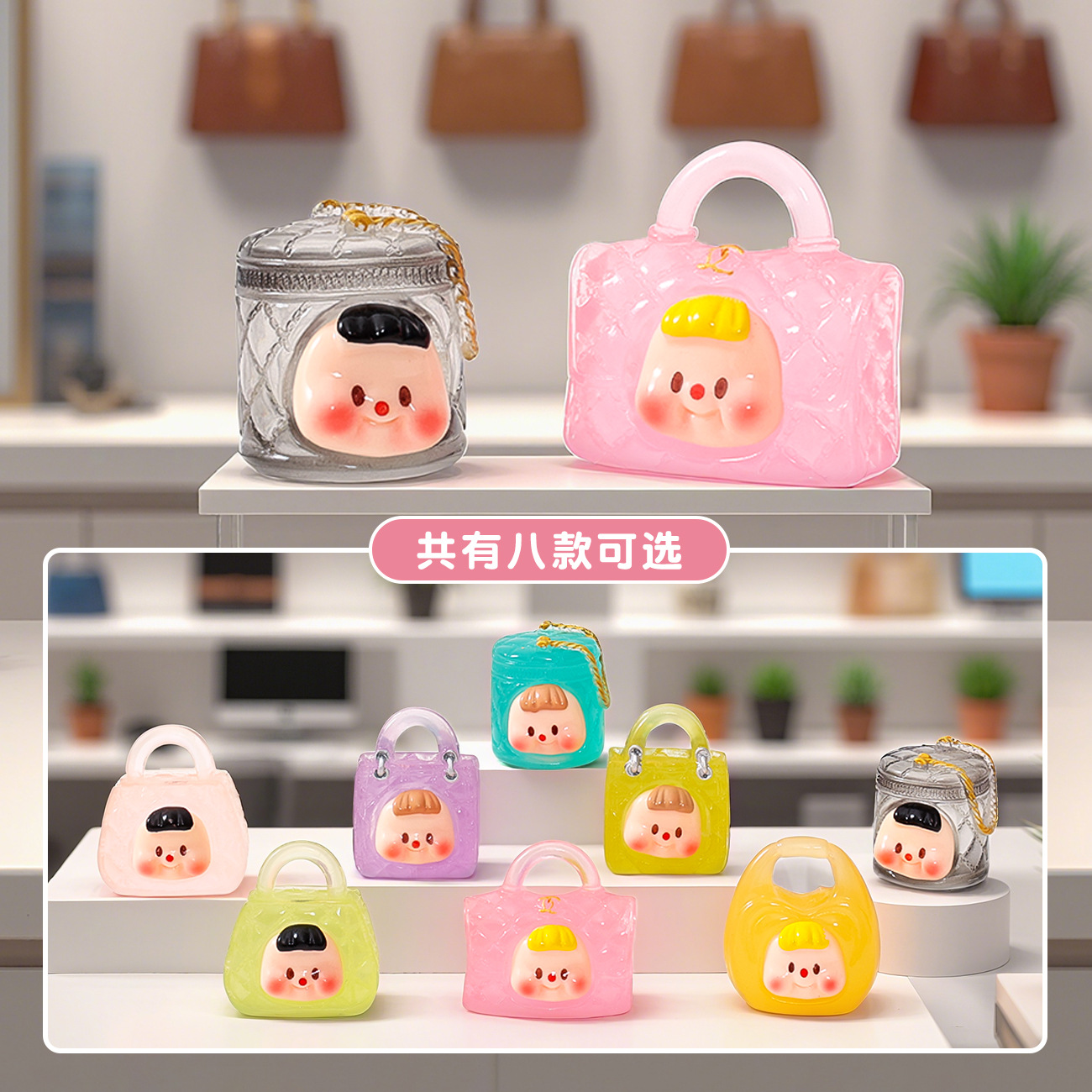 卡通夜光包包小妹树脂萌粒公仔车载桌面摆件萌粒盲盒配件树脂娃娃