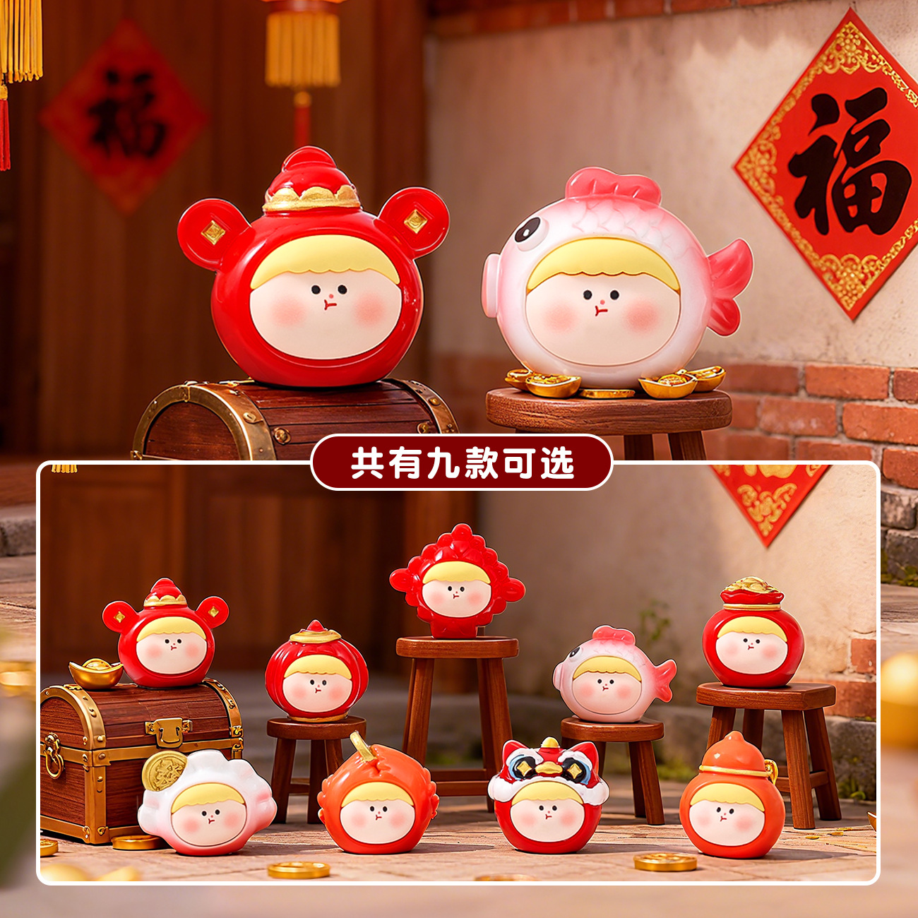 新款潮玩公仔招财摆件萌粒diy配件 树脂工艺品汽车车载桌面小摆件