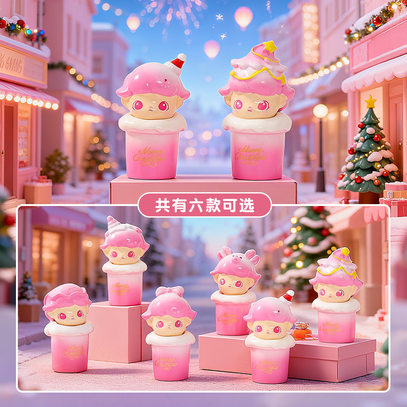 粉色渐变迪迪圣诞杯萌粒公仔冬日圣诞风树脂车载桌面摆件盲袋配件
