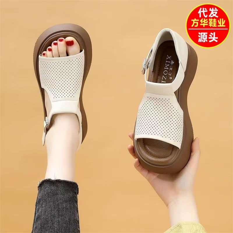 新着カジュアルオールマッチングレディースファッション 2025 夏の新厚底バックル厚底フィッシュマウスサンダル