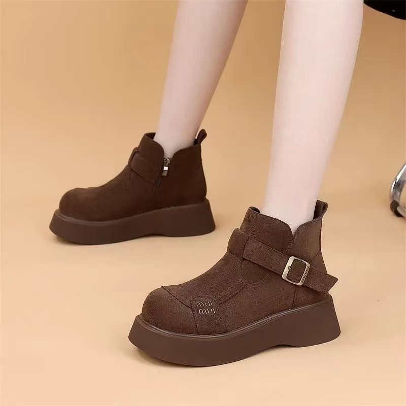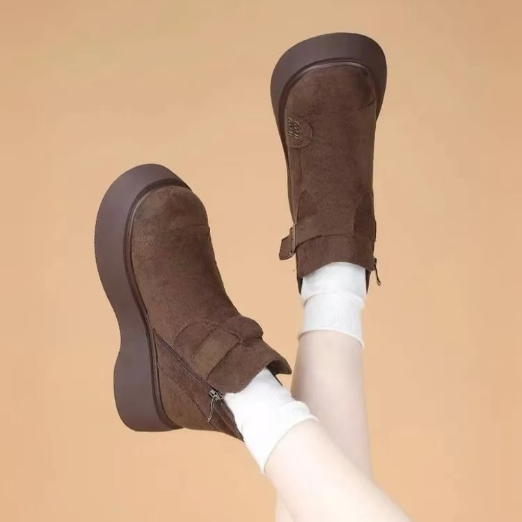 2025冬季新款保暖加绒防滑绒面短靴女百搭气质马丁靴厚底勃肯靴女