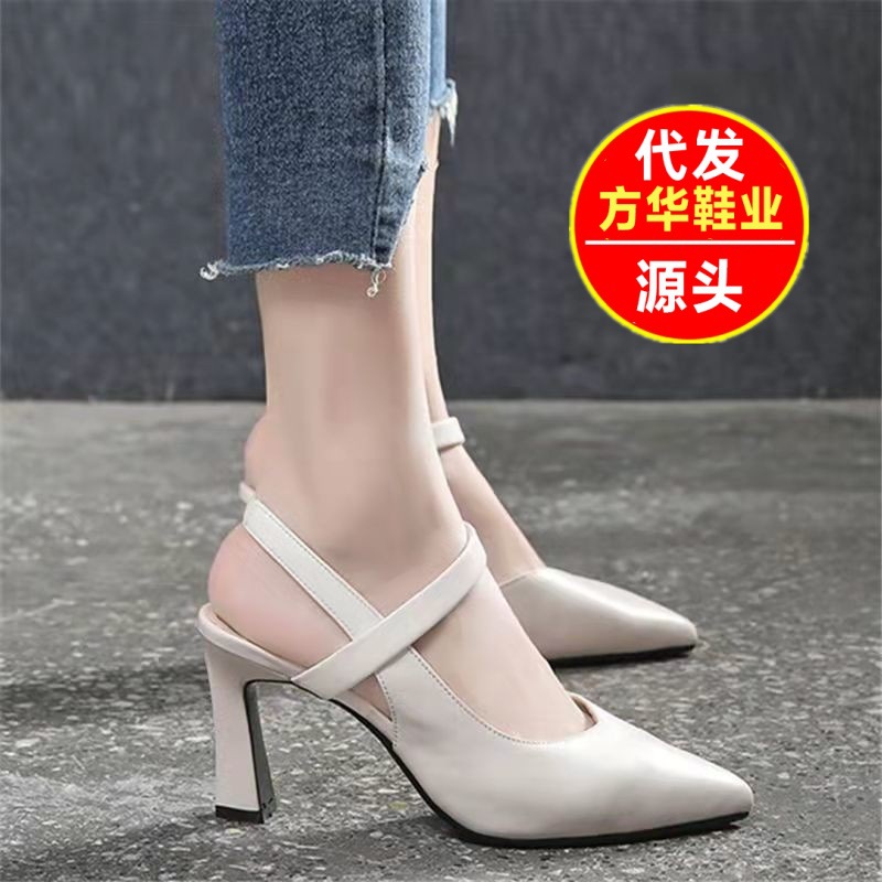 ソフトレザーつま先スリッパ 2025 年夏の新しい中空通気性サンダル多用途気質ポインテッドトゥハイヒールスリッパ