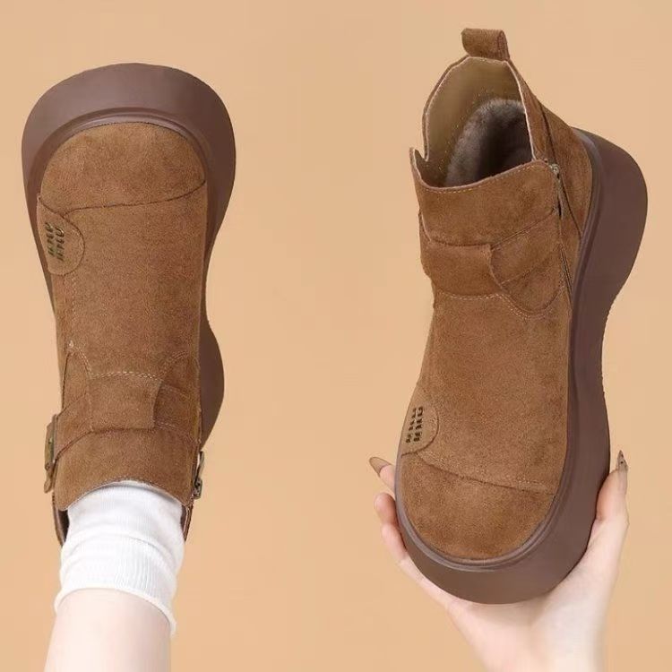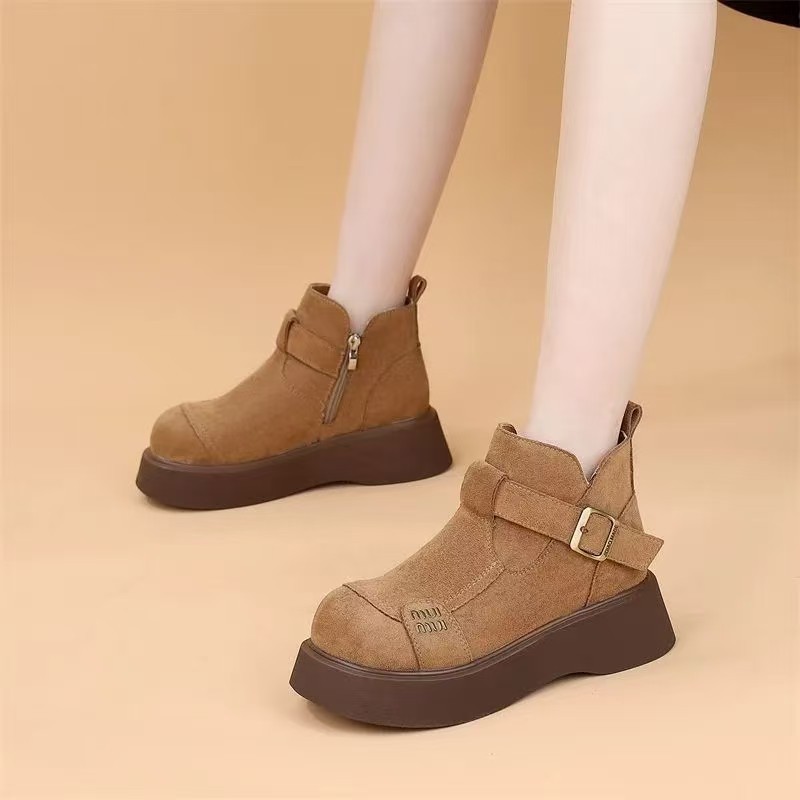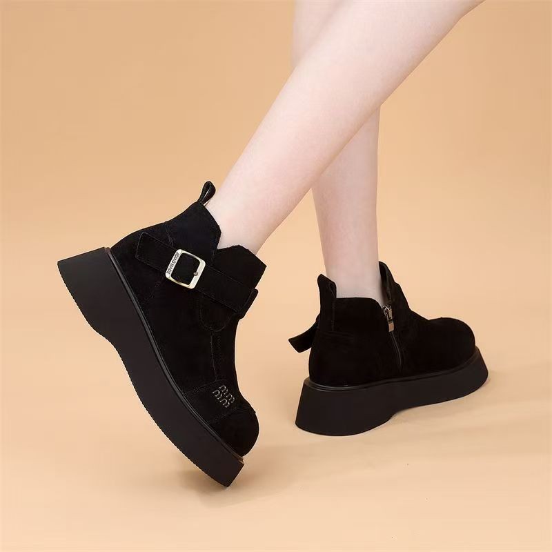 2025年冬季新款休闲时尚百搭低帮厚底厚绒保暖短靴后拉链时装靴女