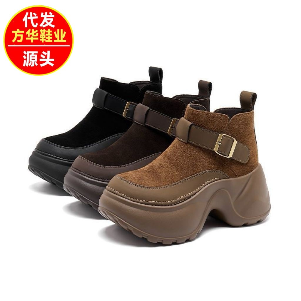 2025冬季新款时装靴女厚底高跟小个子勃肯短靴瘦瘦靴切尔西烟筒靴