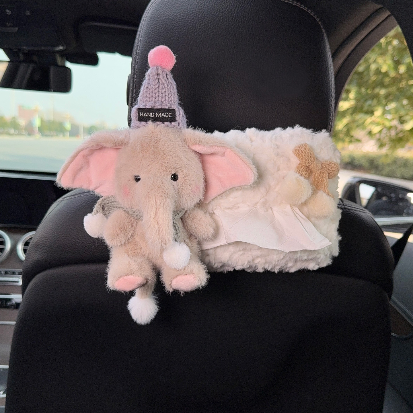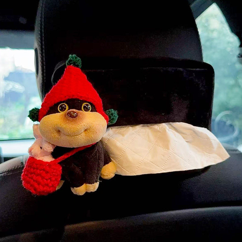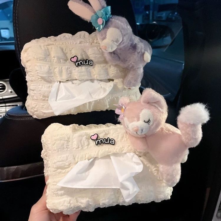 車用ティッシュボックス、シートティッシュバッグ、女の子用のかわいいウサギのぬいぐるみ車内人形、ins2025モデル