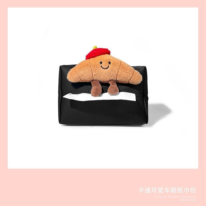 可爱牛角包车载纸巾包创意车内座椅背抽纸袋汽车扶手箱纸巾盒女生