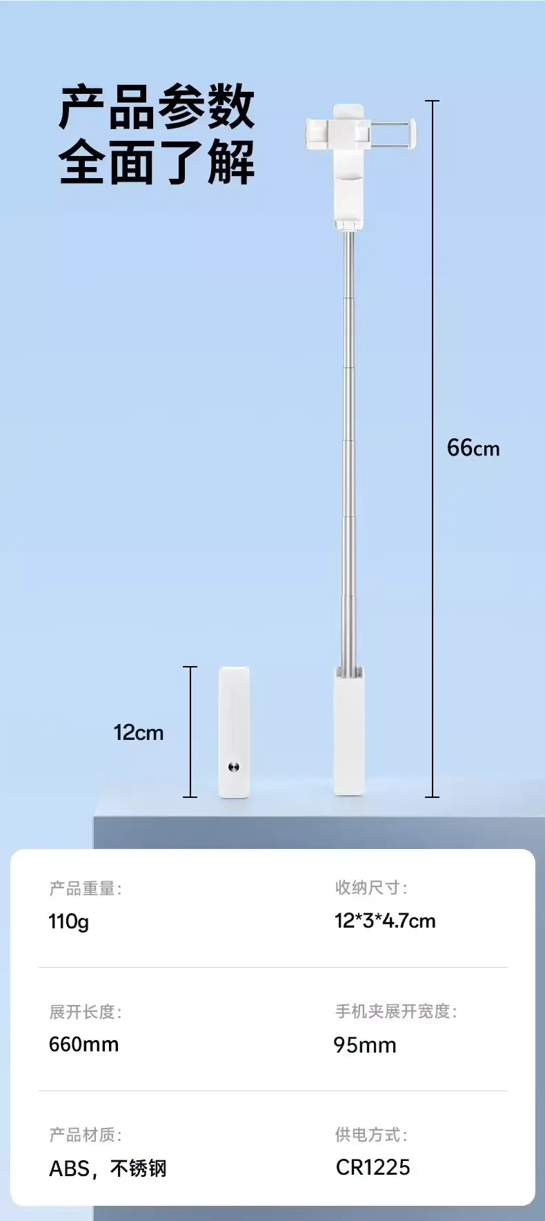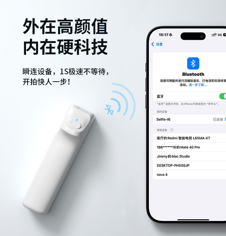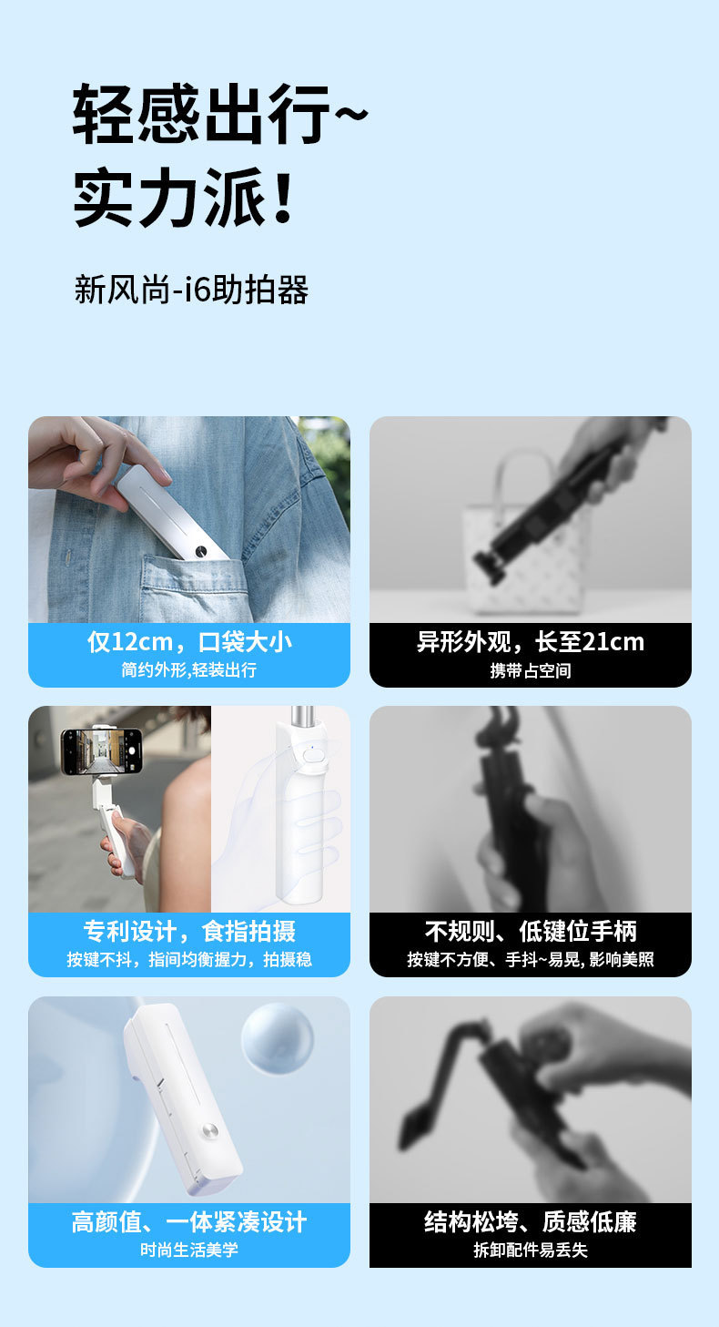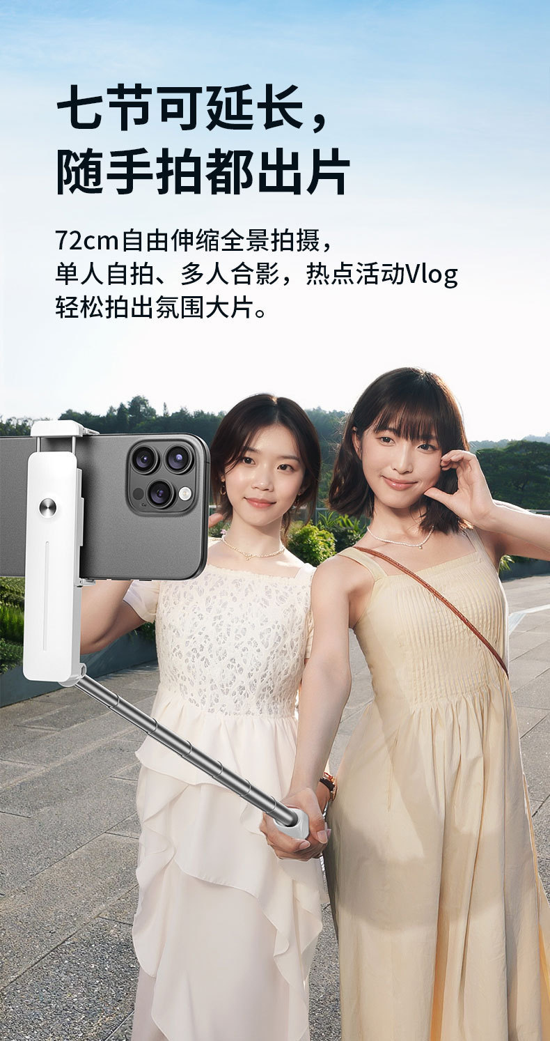 跨境迷你蓝牙自拍杆便携口袋款360° 旋转手持助拍器户外自拍神器