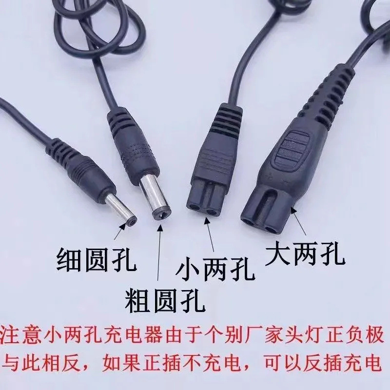 头灯双孔8字B形钓鱼灯蝎子灯手电锂电矿灯通用小头细孔圆孔充电器
