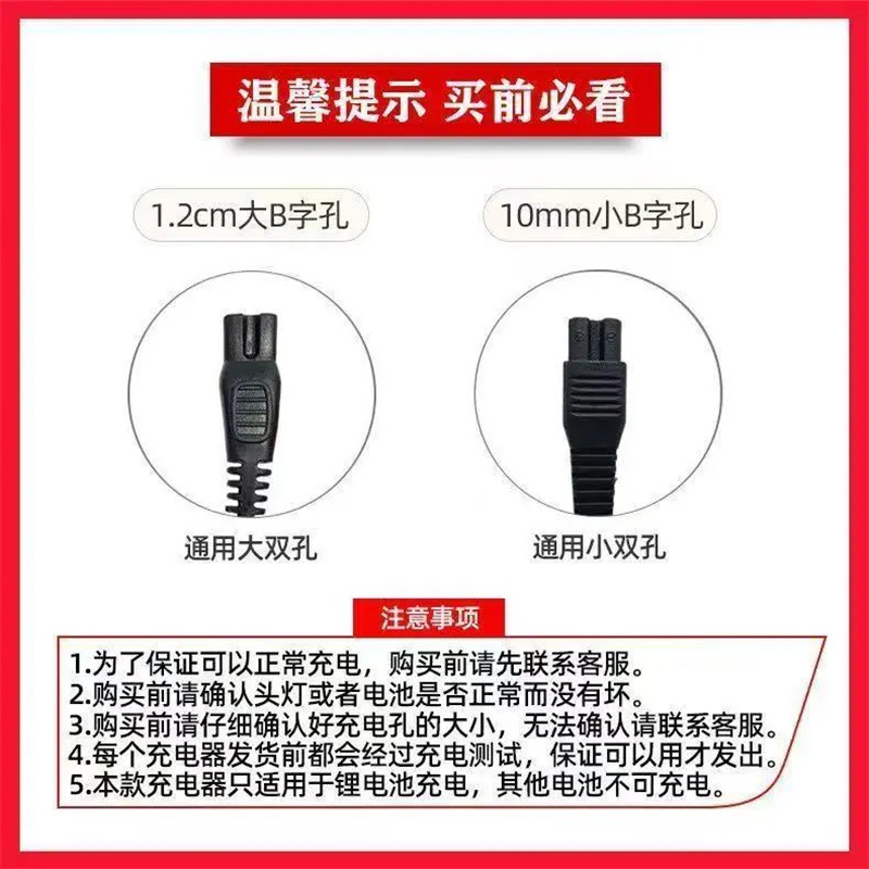 头灯充电器双孔通用型B字2孔双孔圆孔细孔矿灯钓鱼灯手电筒蝎子灯