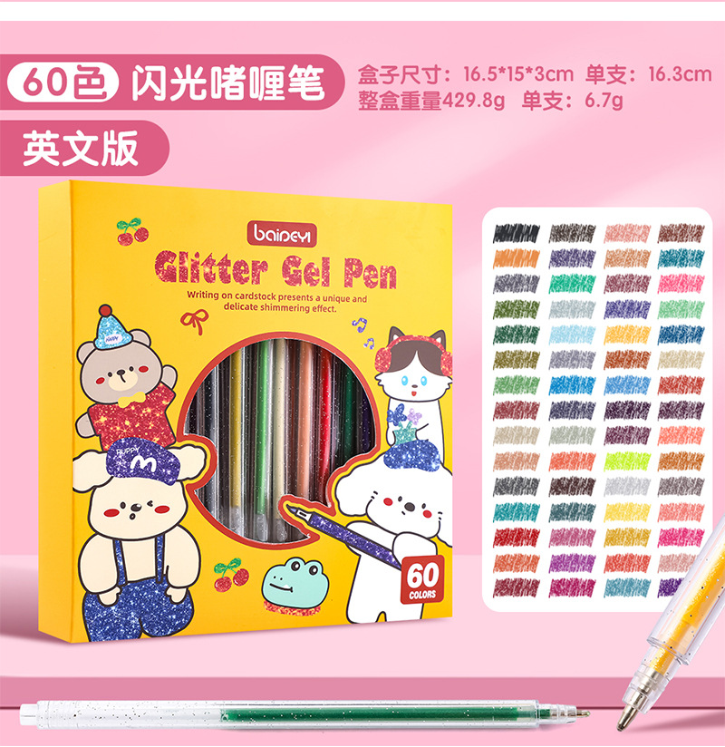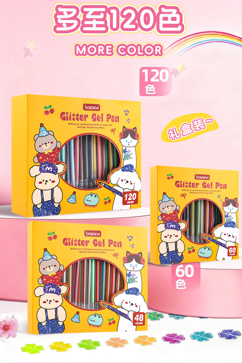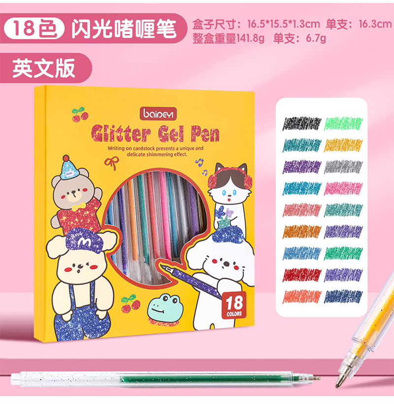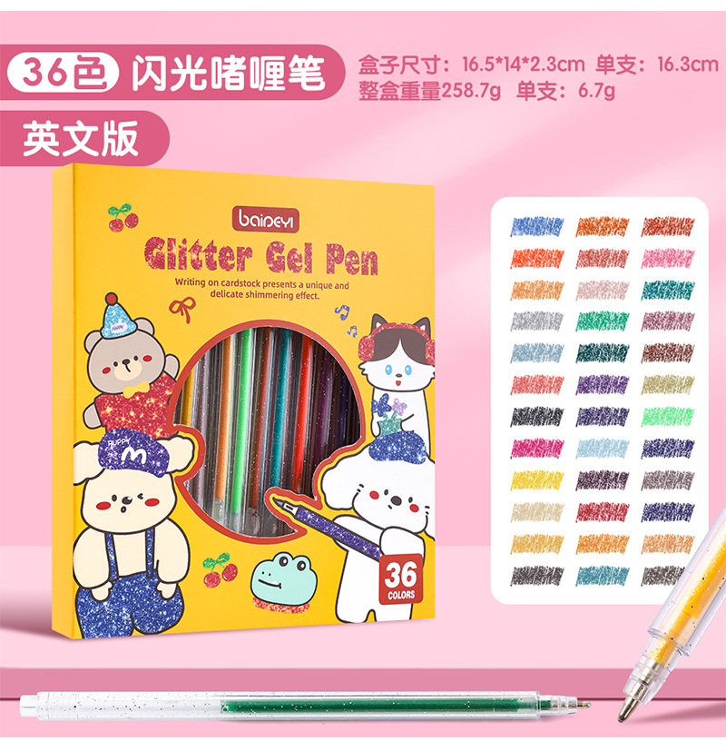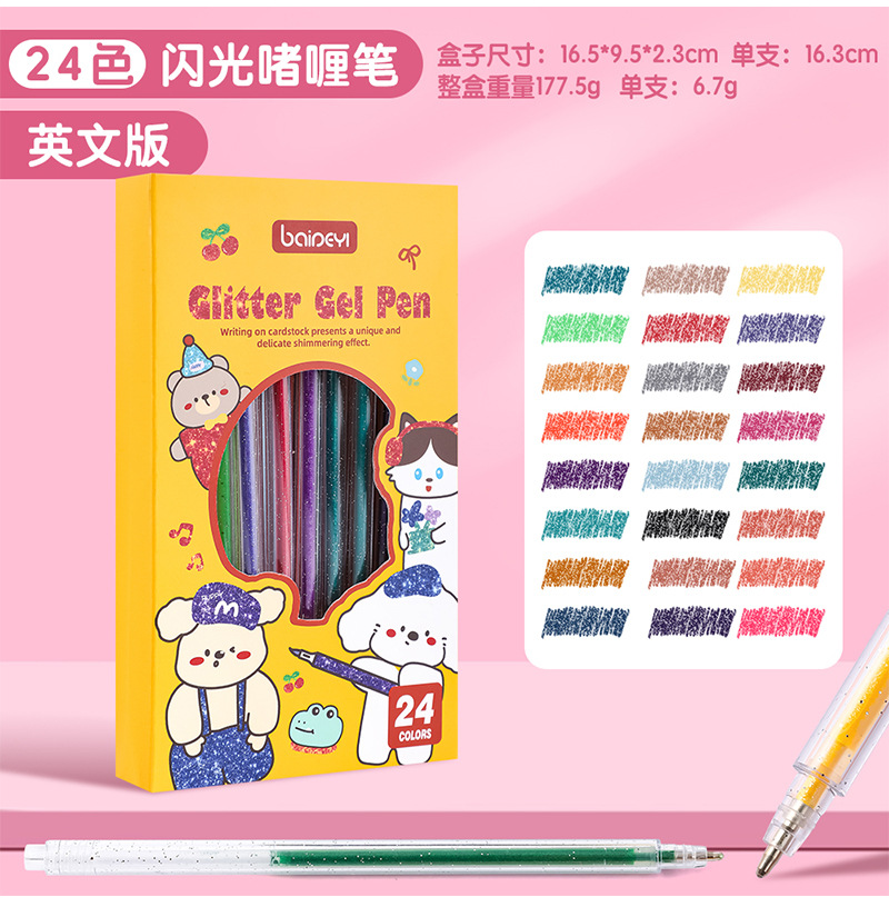 笔芯颜色 8支闪光啫喱笔,12支闪光啫喱笔,18支闪光啫喱笔,24支闪光啫喱笔,36支闪光啫喱笔,48支闪光啫喱笔,60支闪光啫喱笔,120支闪光啫喱笔