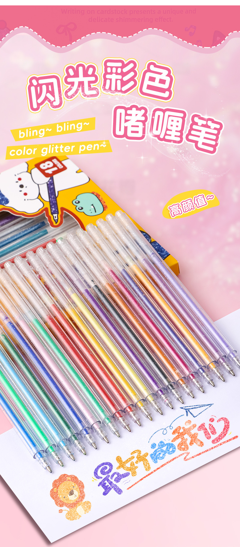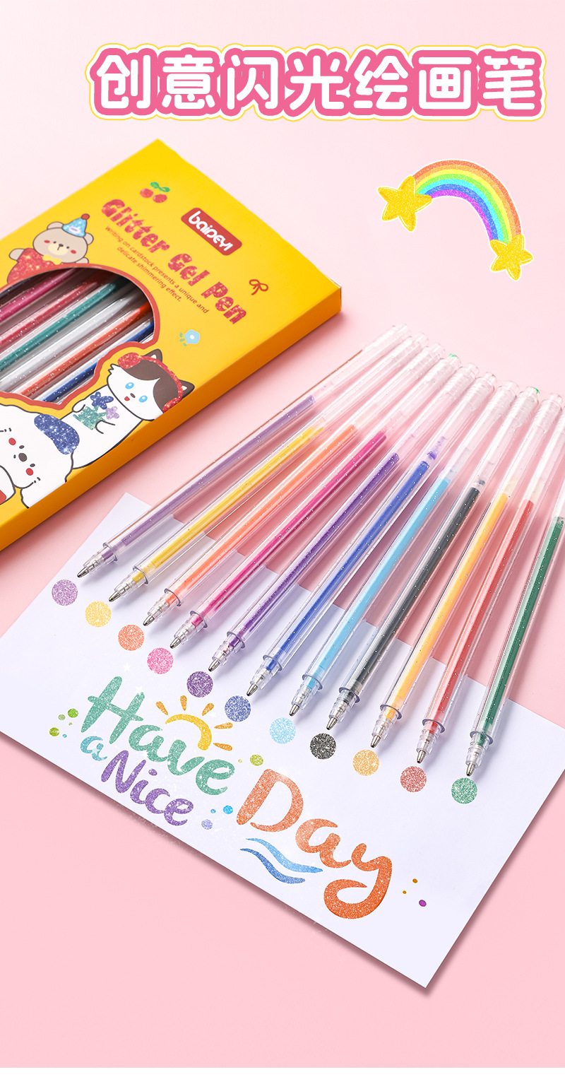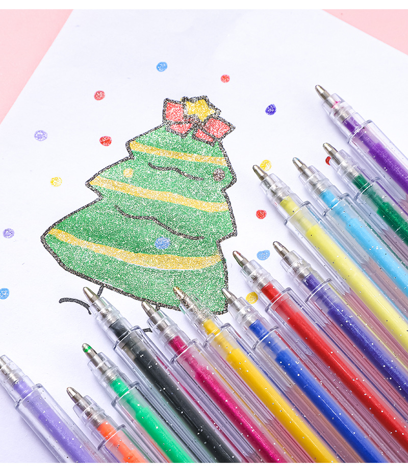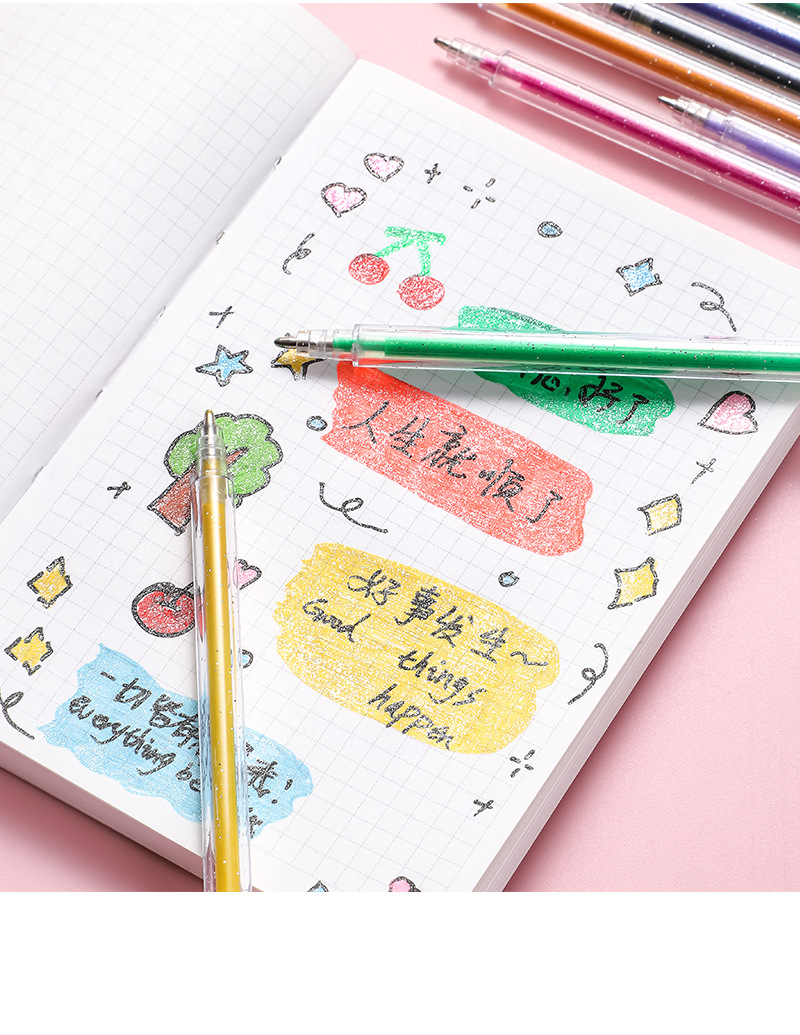 彩色闪光啫喱笔手账中性笔绘画标重点水彩笔儿童亮晶晶彩色荧光笔