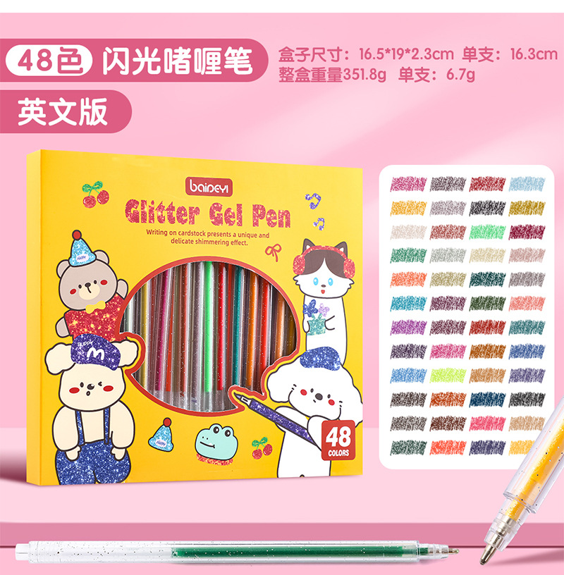大容量闪光笔跨境热销啫喱笔凝胶笔荧光彩色笔8色12色48色100色笔