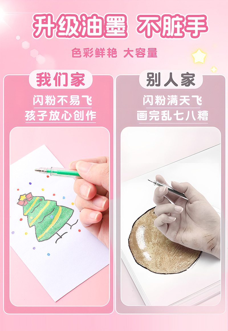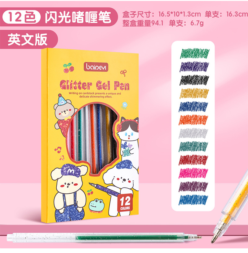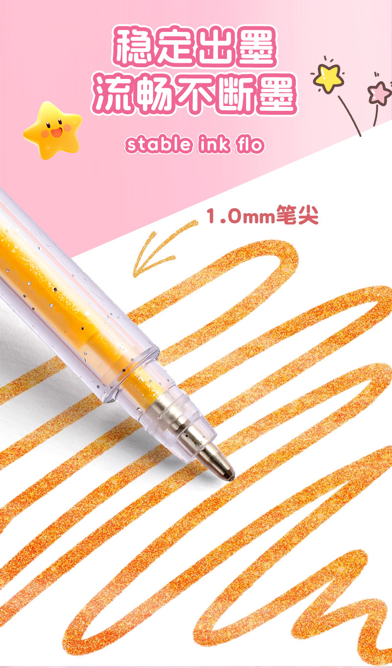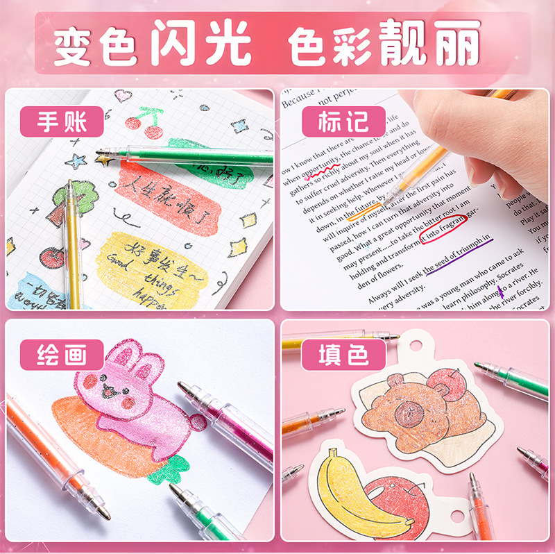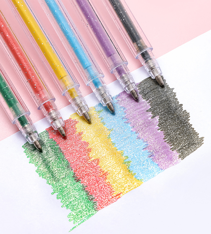 跨境爆闪金属彩色闪光啫喱笔学生高光绘画手账笔流沙亮晶晶荧光笔