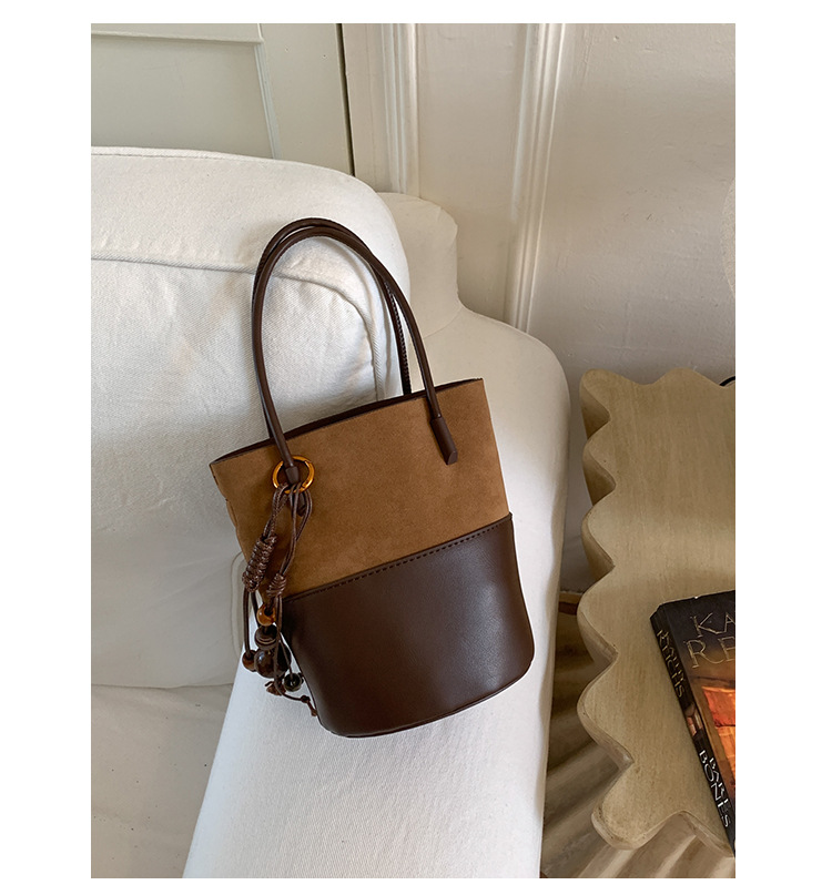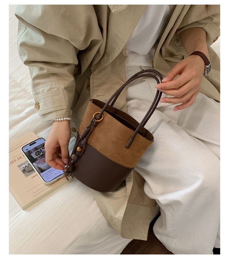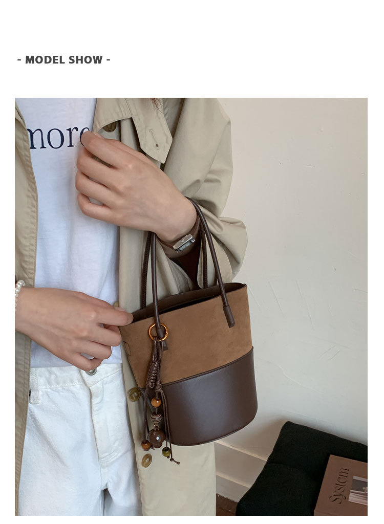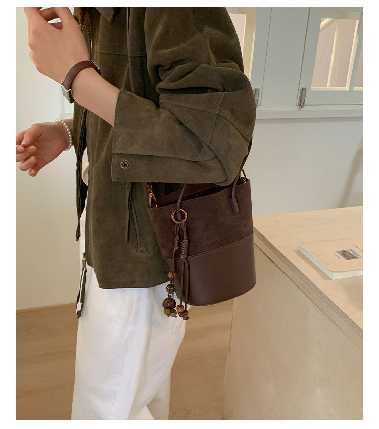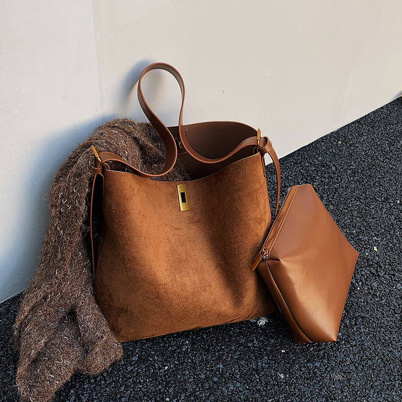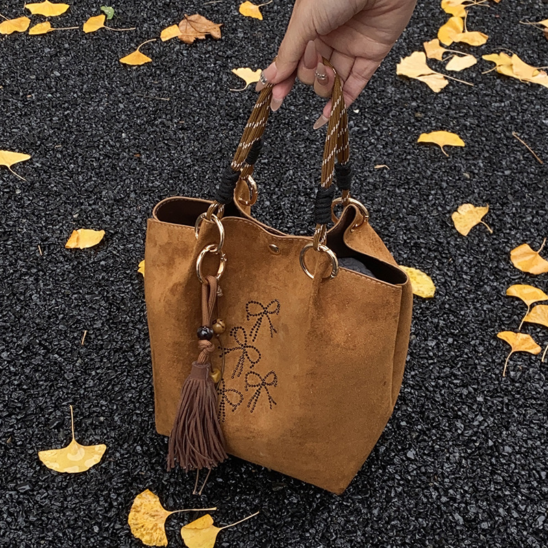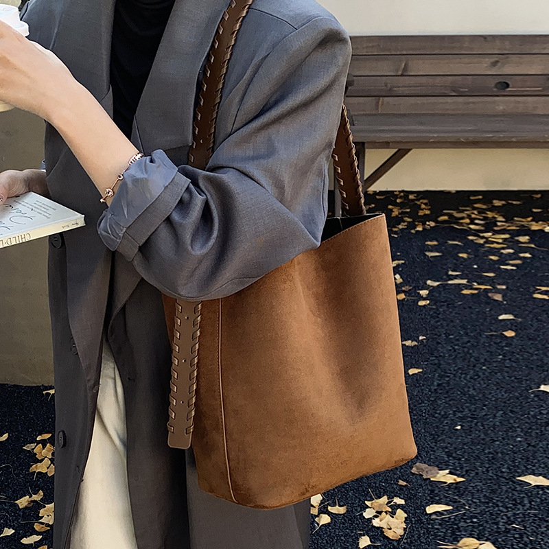 简约复古麂皮绒包包女2025新款通勤单肩斜挎包大容量水桶包托特包