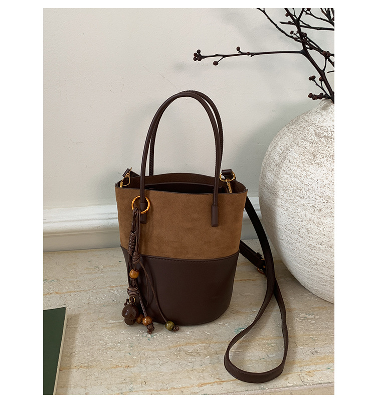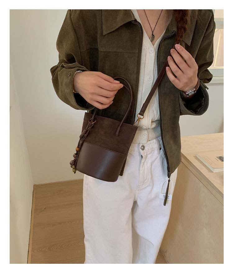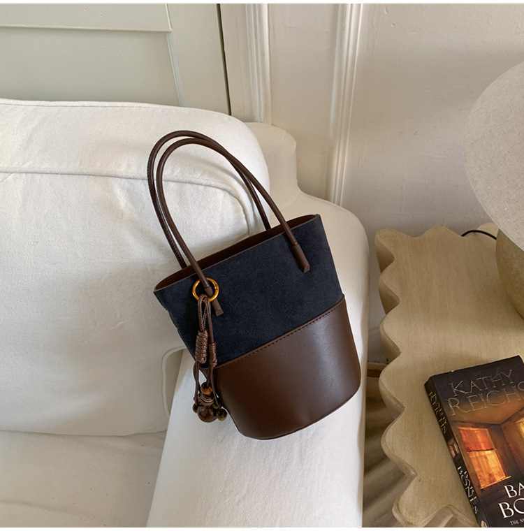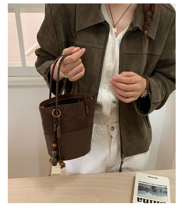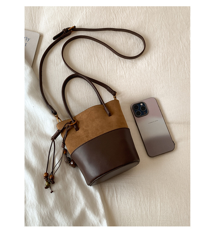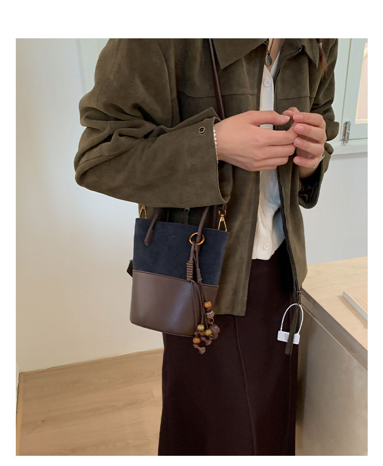 简约复古麂皮绒包包女2025新款通勤单肩斜挎包大容量水桶包托特包