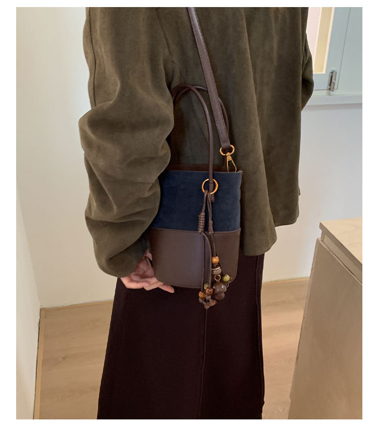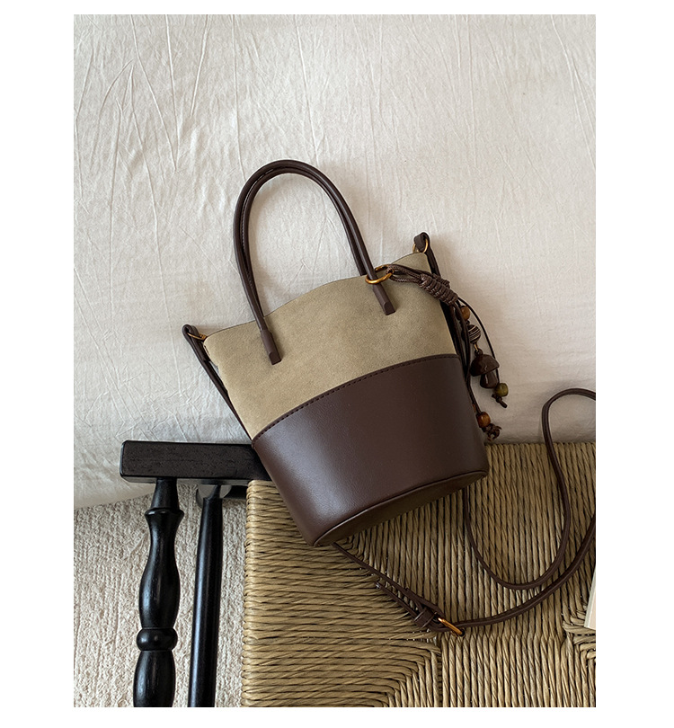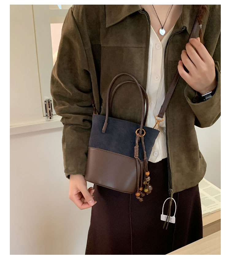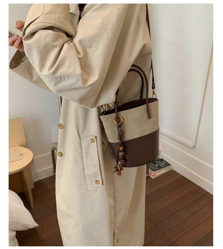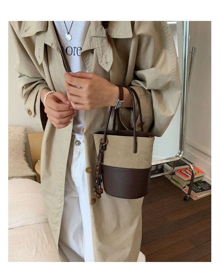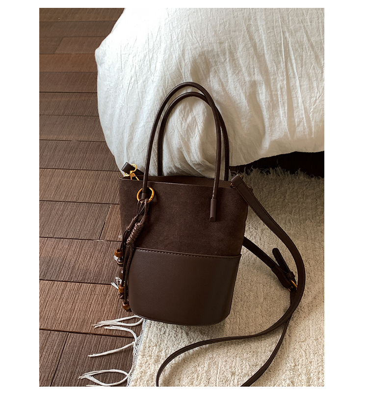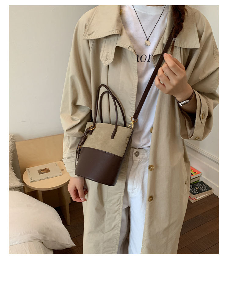 简约复古麂皮绒包包女2025新款通勤单肩斜挎包大容量水桶包托特包