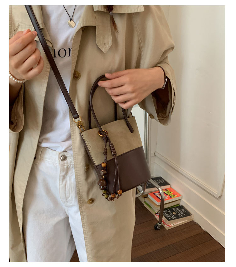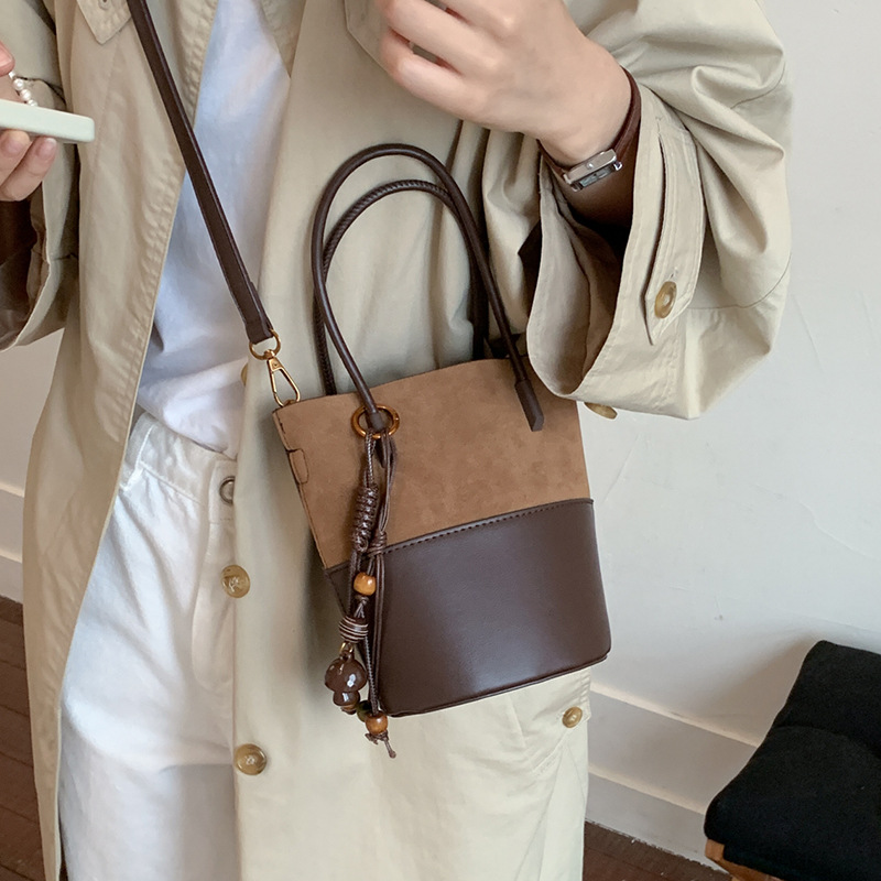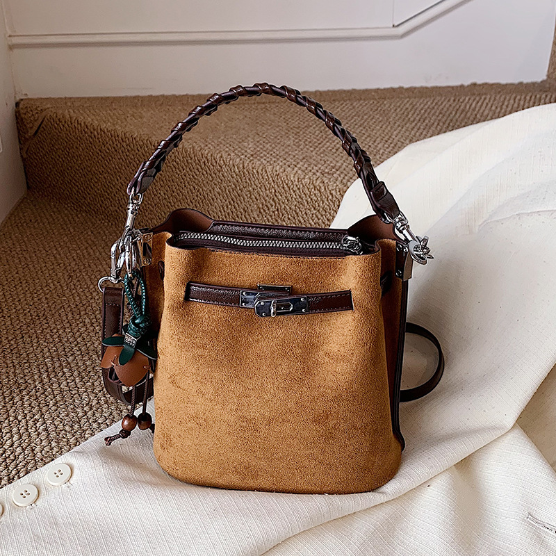 精致超火小众麂皮绒包包女2025新款复古百搭斜挎包时尚手提水桶包