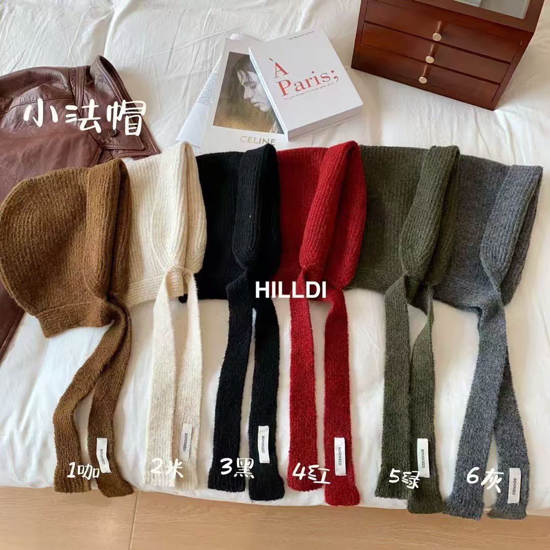 韩版巴拉克拉法帽毛线帽子秋冬保暖针织帽羊毛混纺绑带护耳套头帽