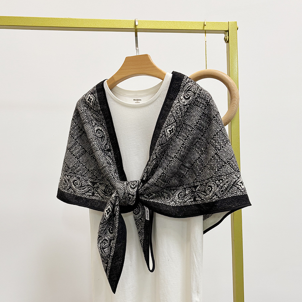 新款丝巾韩系复古四宫格腰果花菱形巾双面领巾围脖棉麻围巾小披肩
