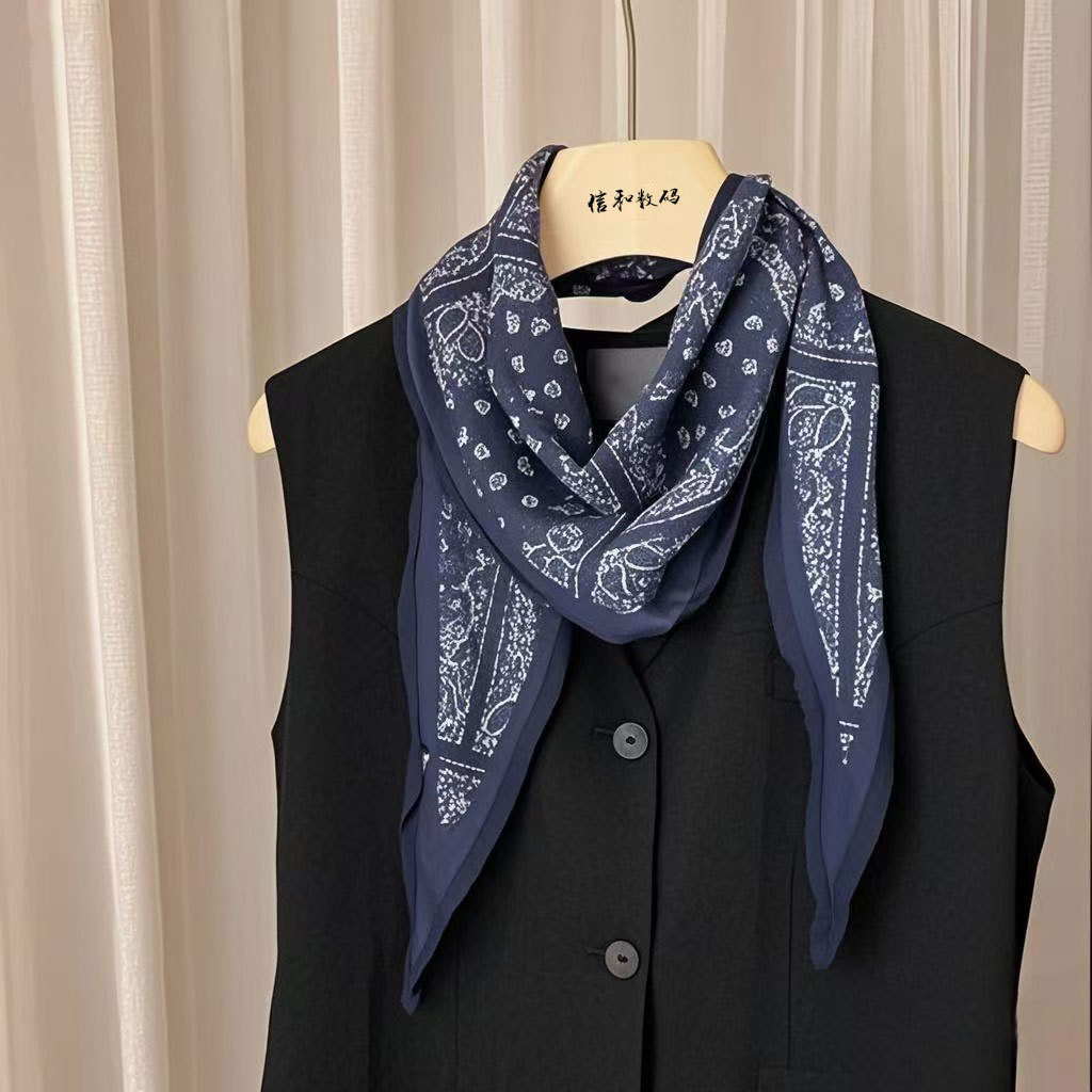 新款复古双面腰果丝巾女士百搭印花高级感氛围领巾围脖围巾装饰