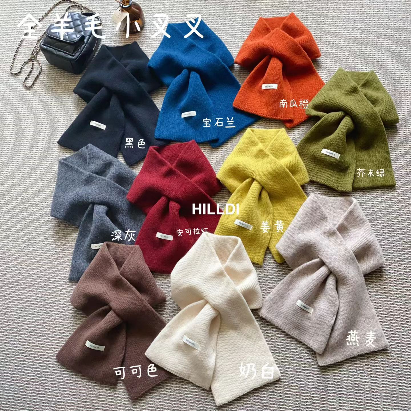 韩系氛围 100% 澳洲羊毛围巾女新款 情侣款保暖交叉围脖邻巾 百搭
