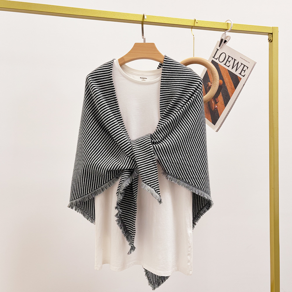 全涤流苏披肩外搭女2025新款秋冬韩系三角针织叠穿气质坎肩围巾
