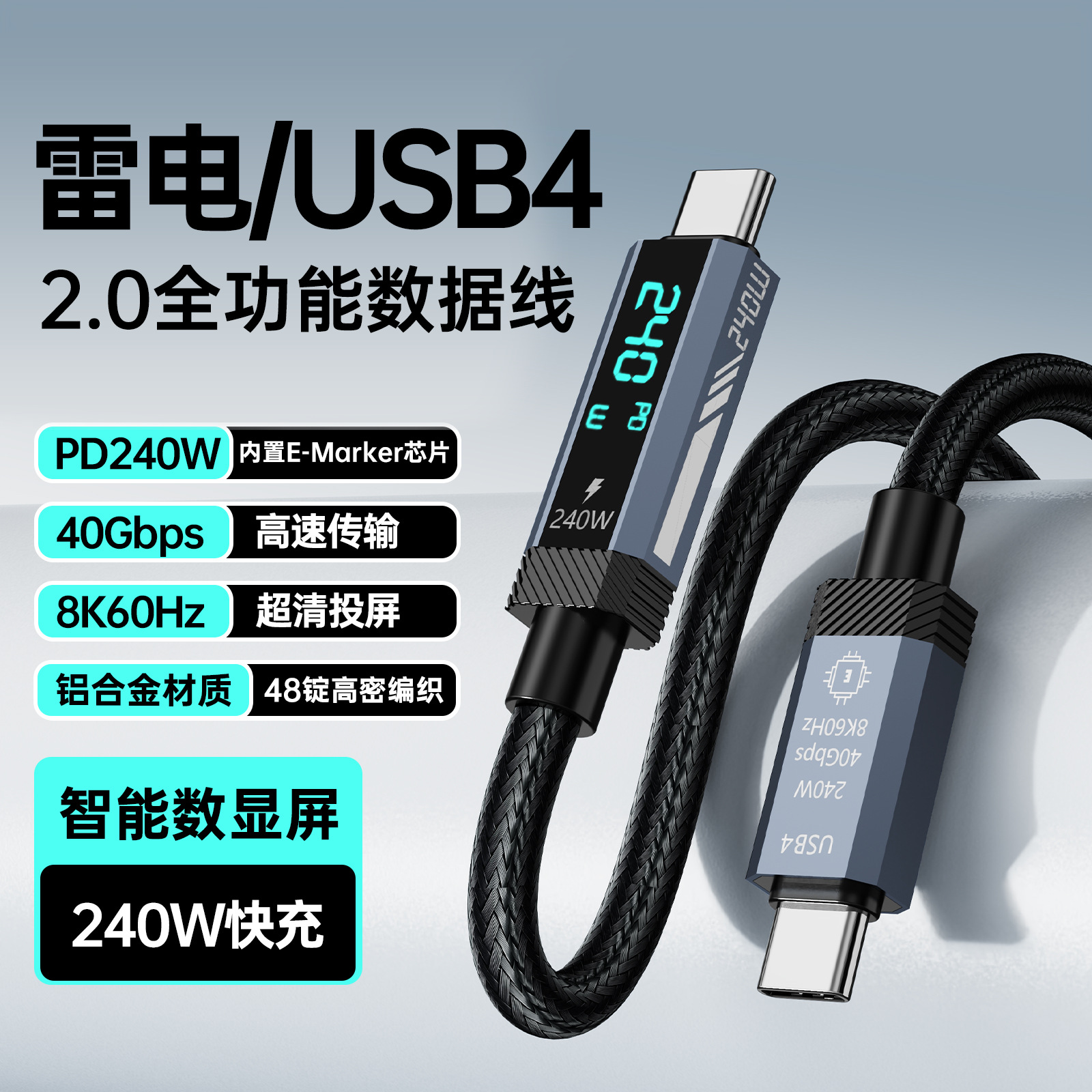 源头工厂240W维刻磁吸数据线编织1m收缩适用苹果平板华为小米快充