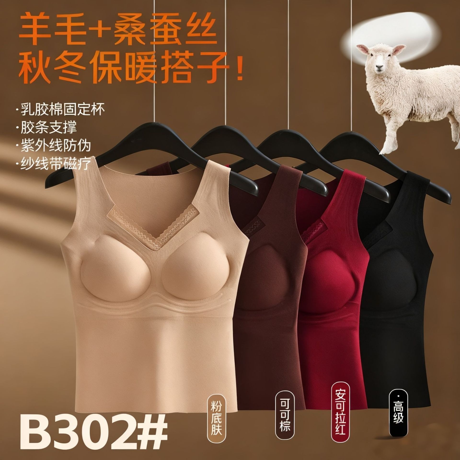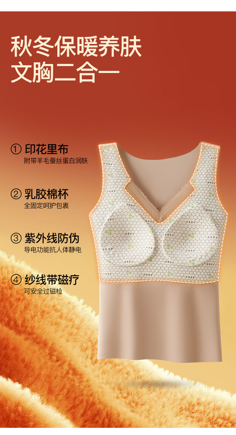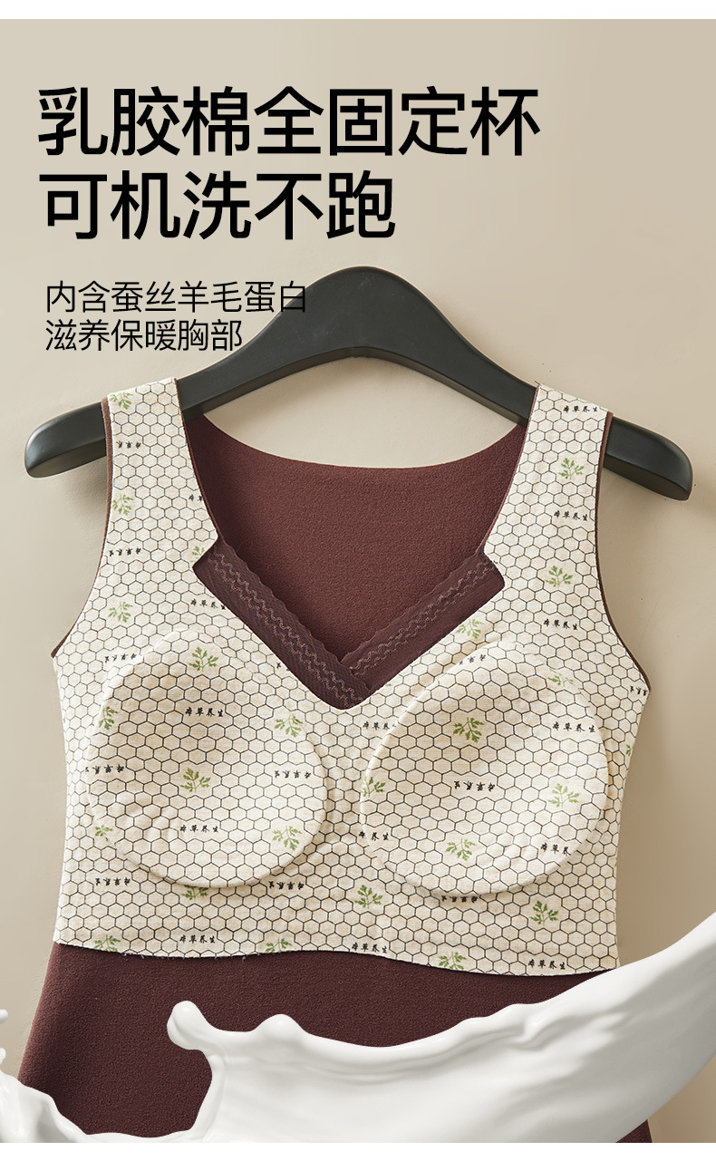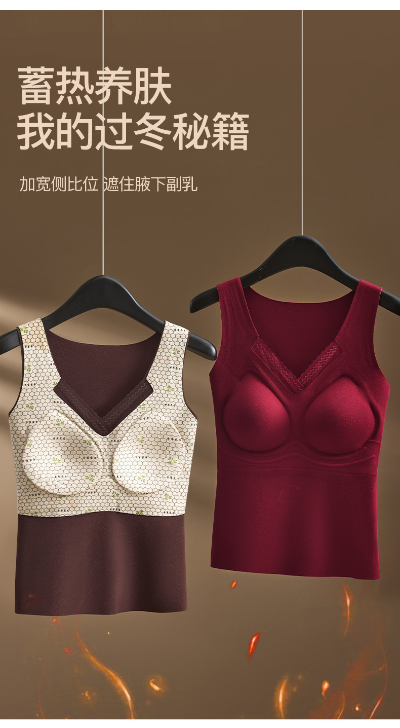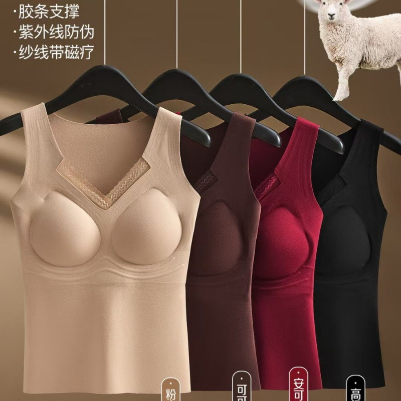 6668冬季新款保暖内衣羊绒保暖背心女带胸垫收副乳内搭秋加绒