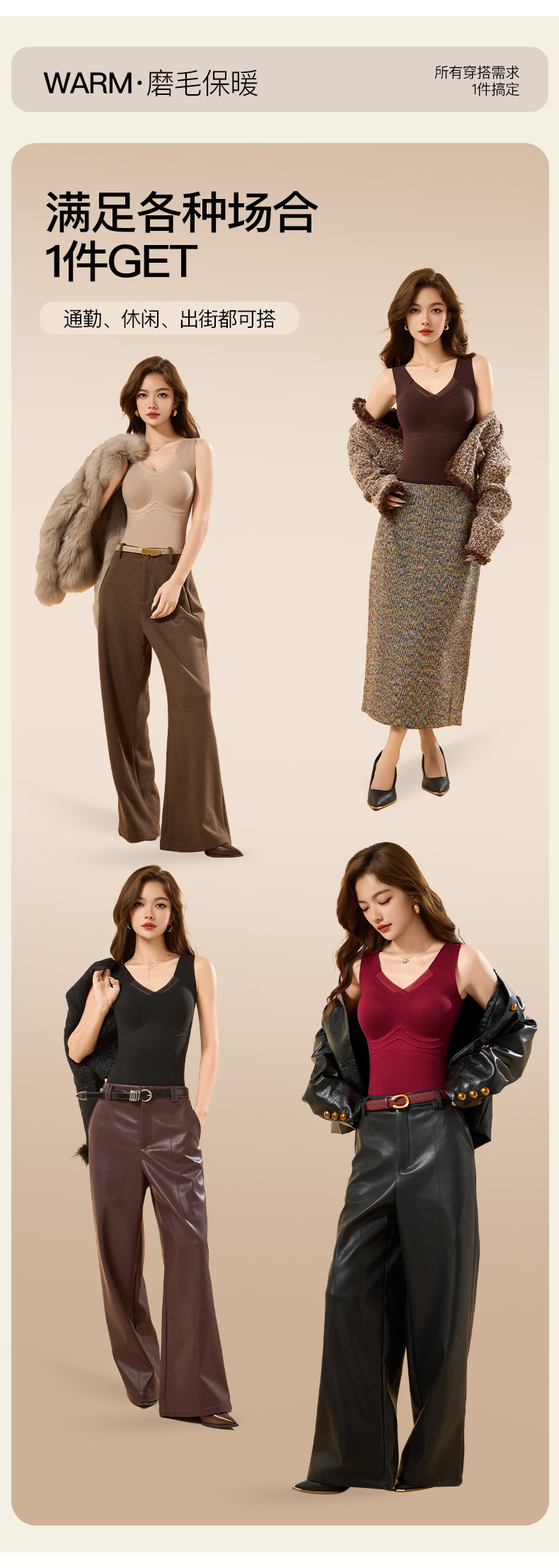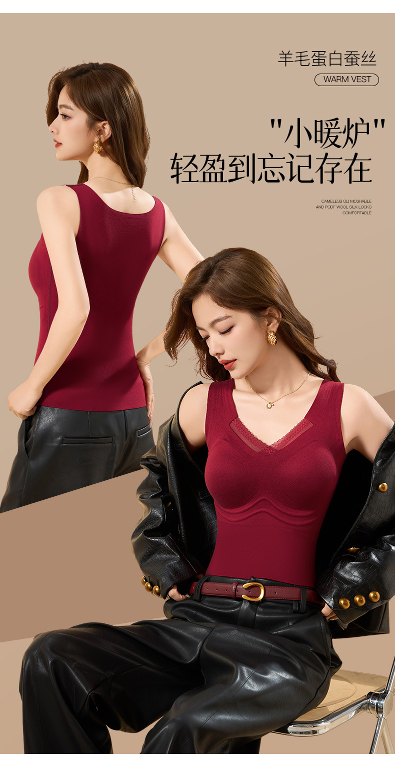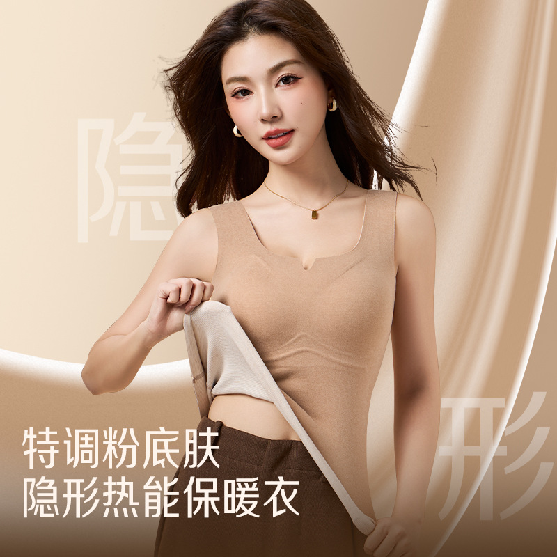 秋冬新品绵羊毛粉底液保暖贴片背心无痕舒适修身显瘦女士恒温美背