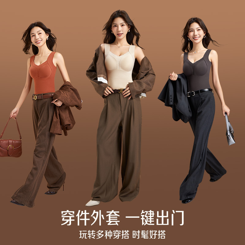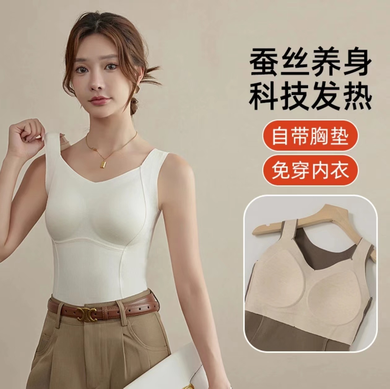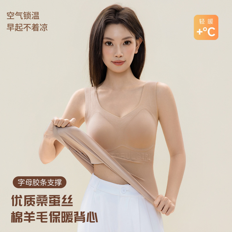秋冬季保暖背心免穿文胸自带杯垫可拆卸无痕保暖内衣女士内搭马甲