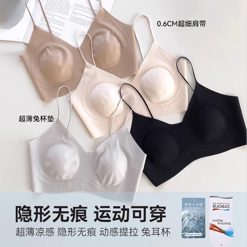 ピラティスダイナミックシリーズスパゲッティストラップブラジャー女性の夏の新しい超薄型ウサギの耳カップ通気性シームレス下着ブラジャー