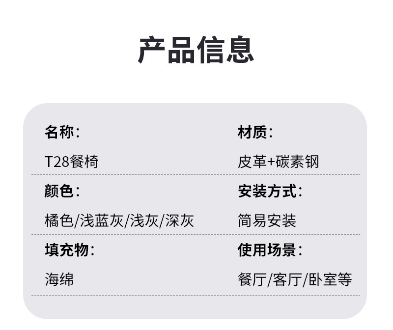 餐厅酒店皮革软包椅子北欧餐椅家用现代简约休闲靠背凳子T28椅子