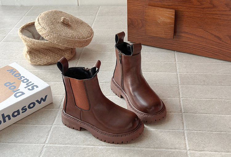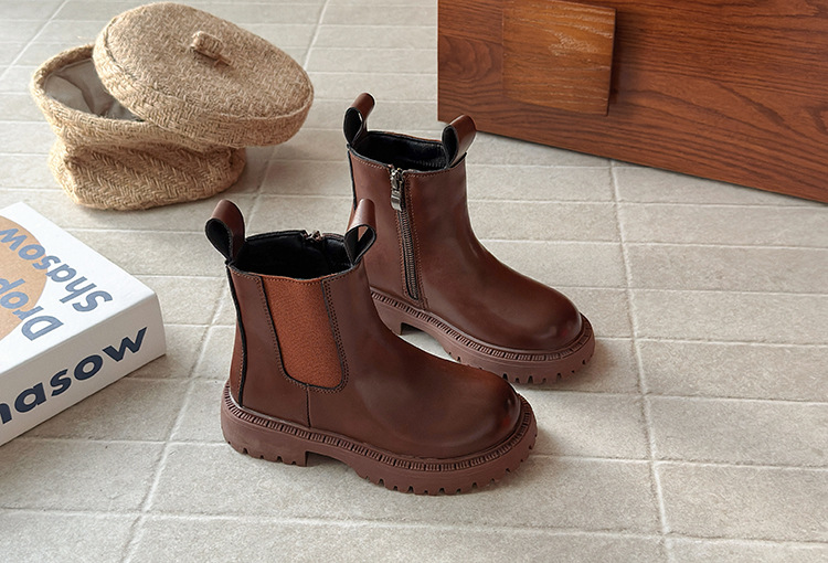 厚底ハイカットブーツ 女の子用 2025秋冬新作 おしゃれ メイラード風 レトロ風 パイルブーツ 裏起毛ショートブーツ