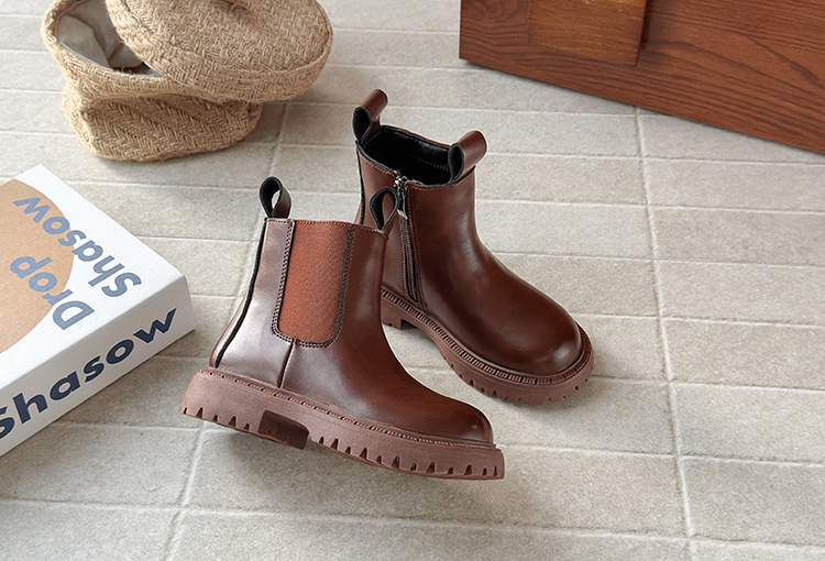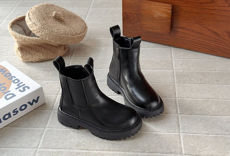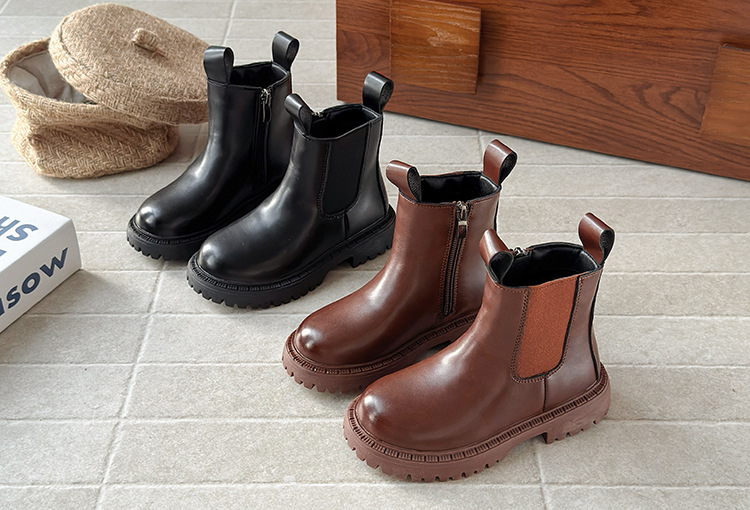 ins英伦风马丁靴2025秋冬季新款韩版女童加绒烟筒靴男童厚底短靴