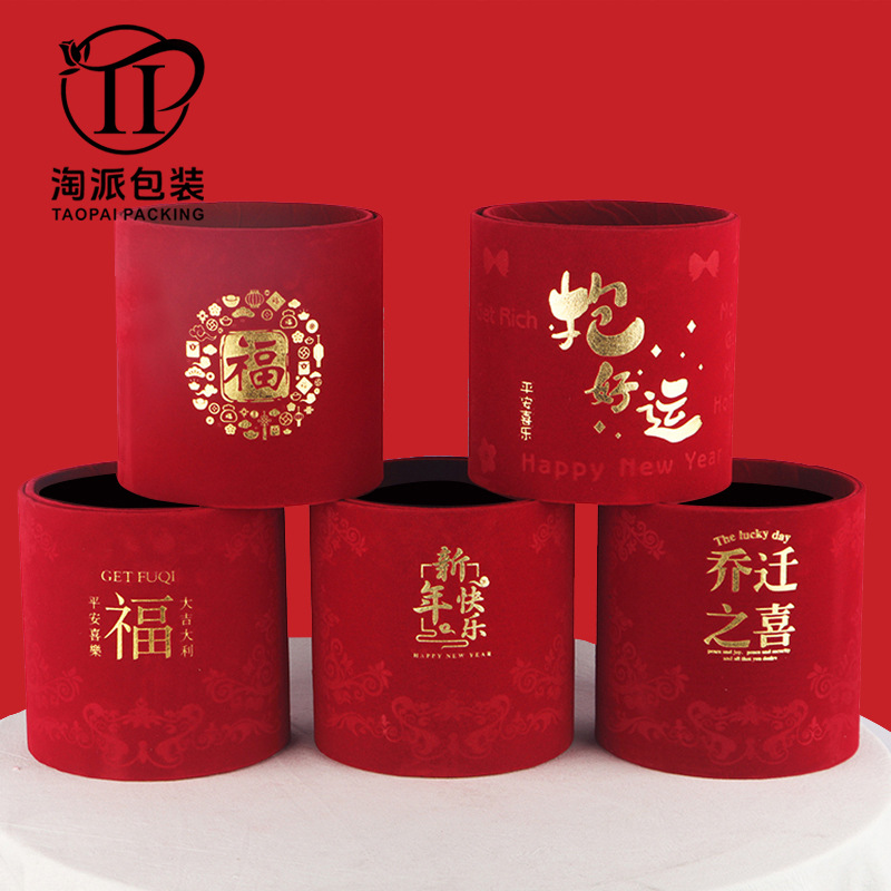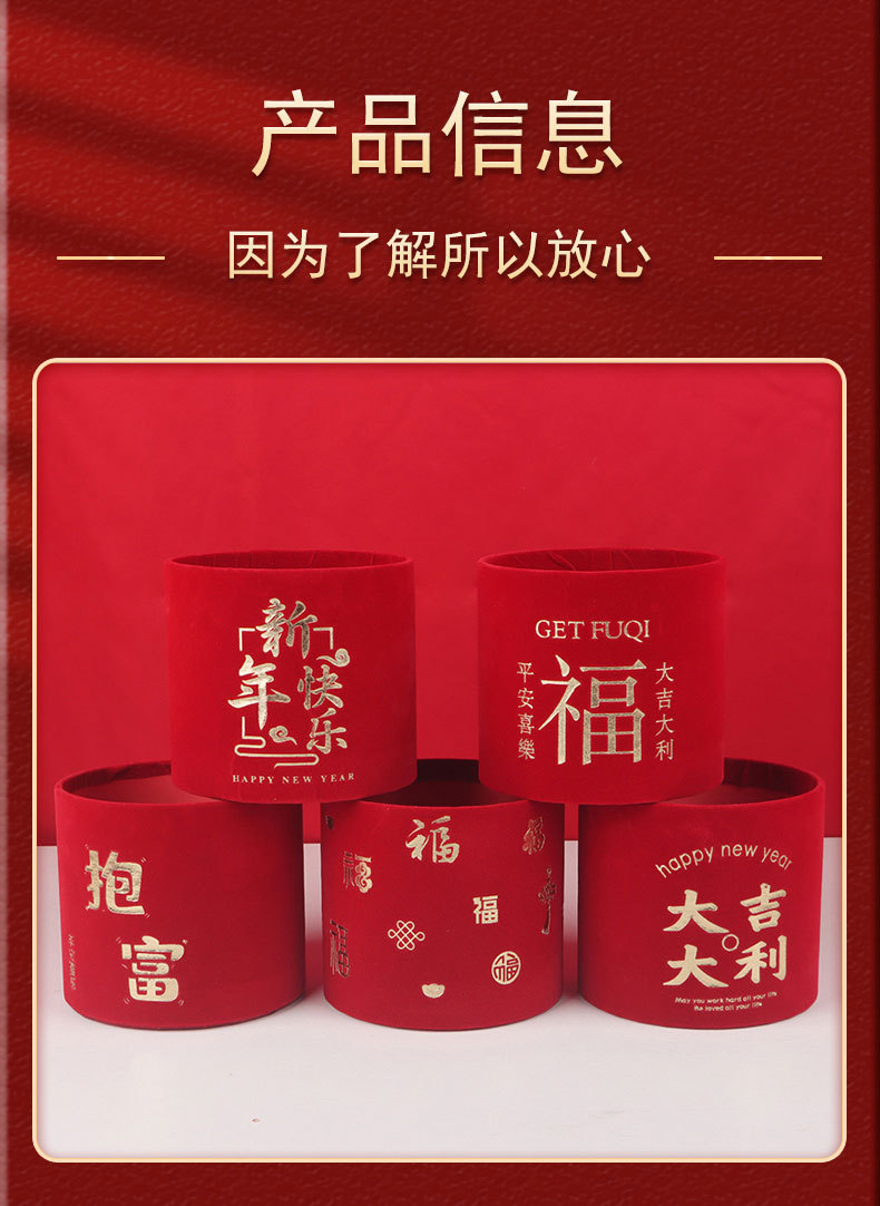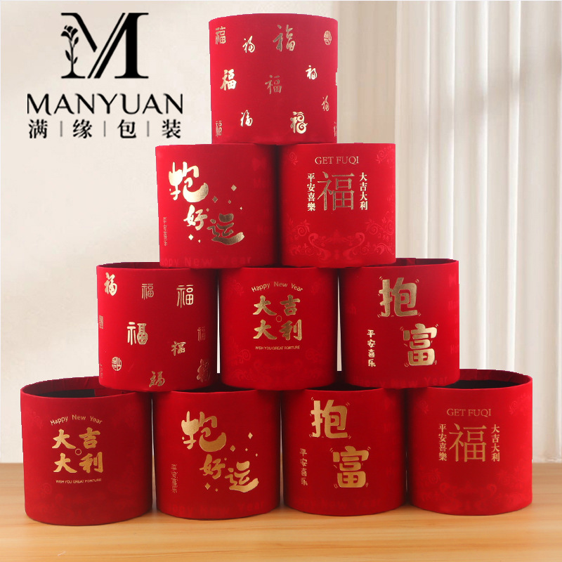 圆形福桶新年套二绒布福桶烫金抱抱桶红色厂家批发年宵花插发财