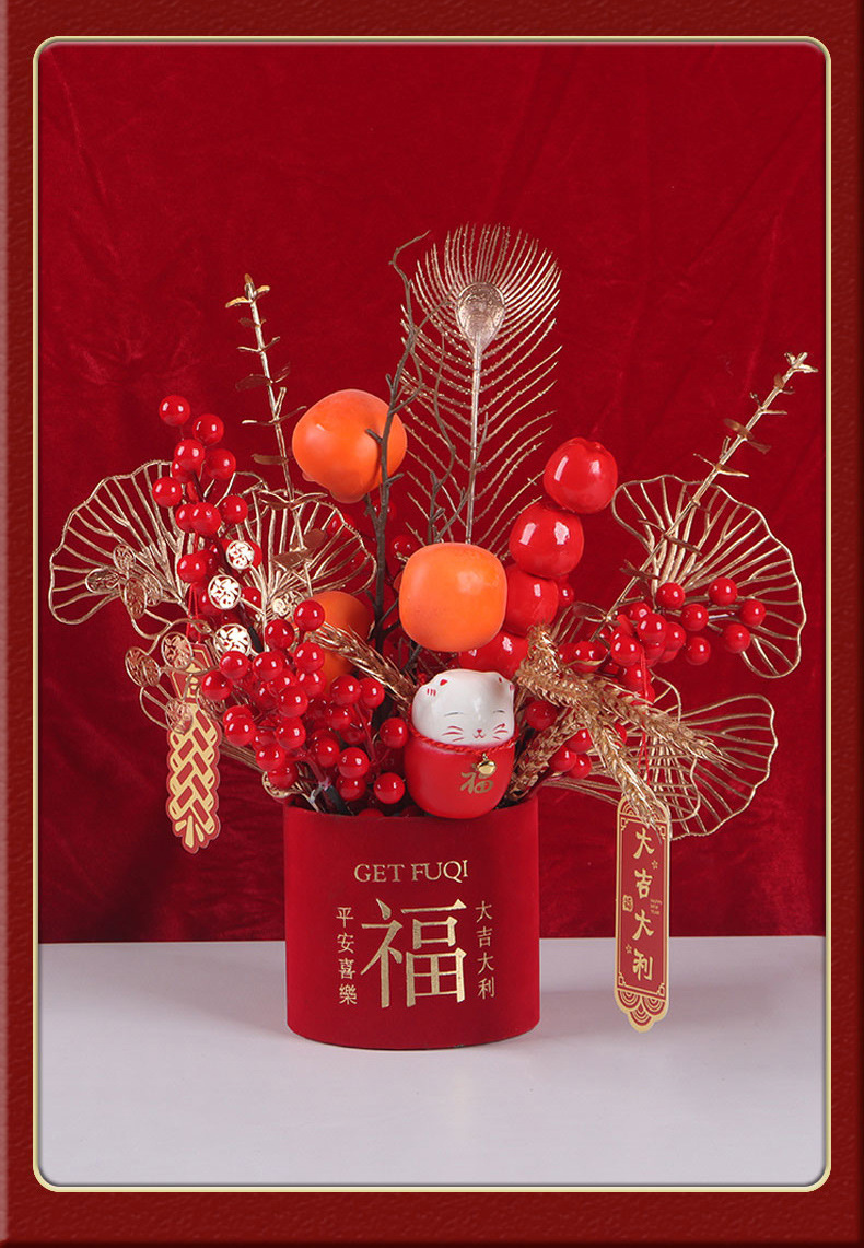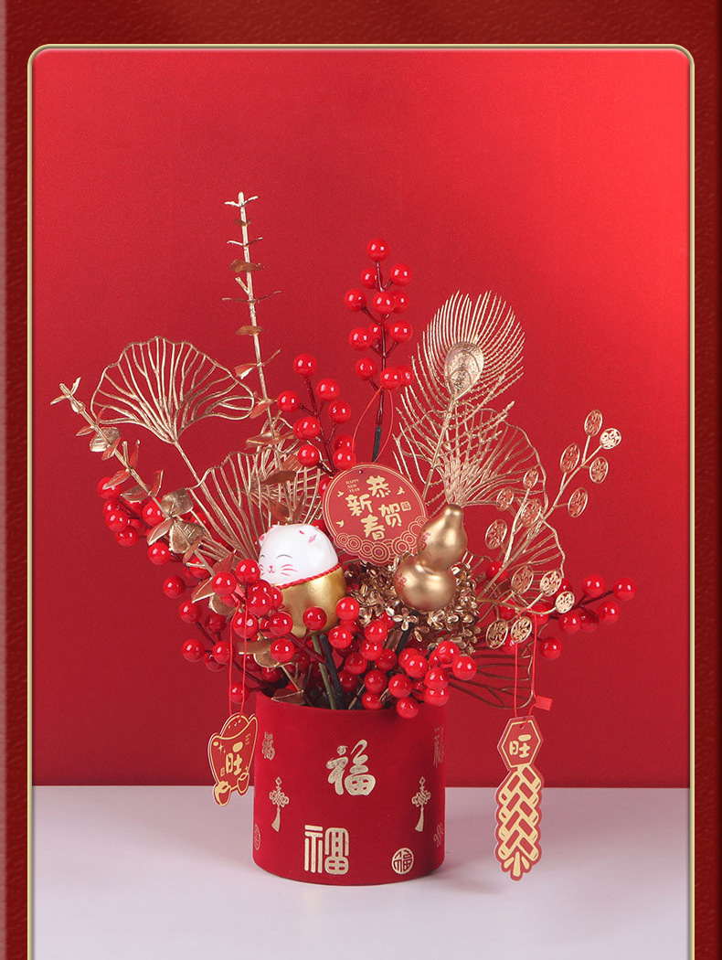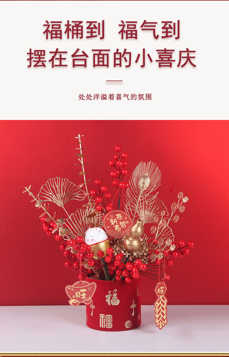 旧正月福桶空桶新年抱っこ桶絨毛桶模擬年夜花生け花桶花束赤いお祝い