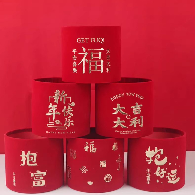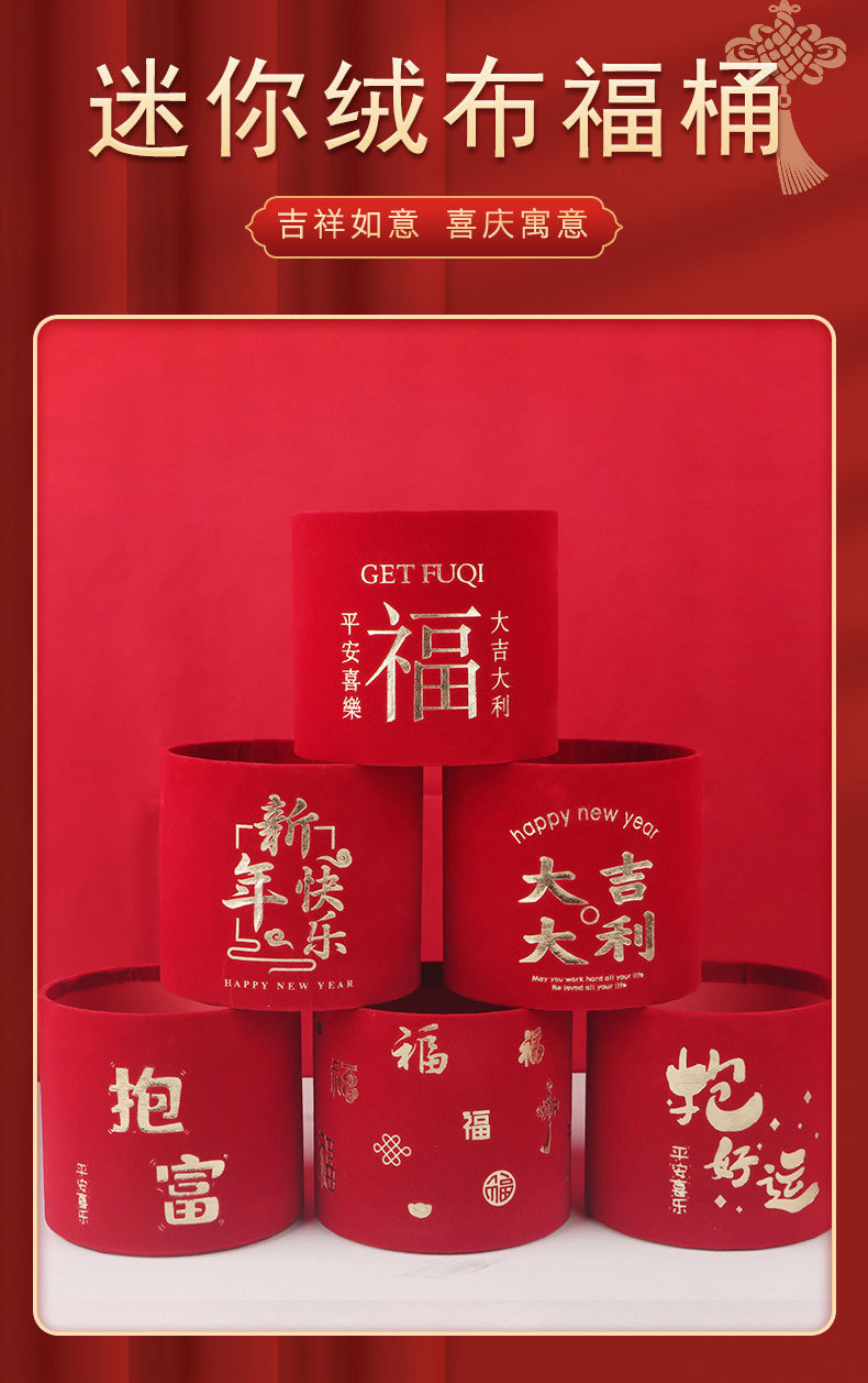 新年春节迷你绒布福桶红色抱抱桶花店插花绒布喜庆过年插花小绒桶