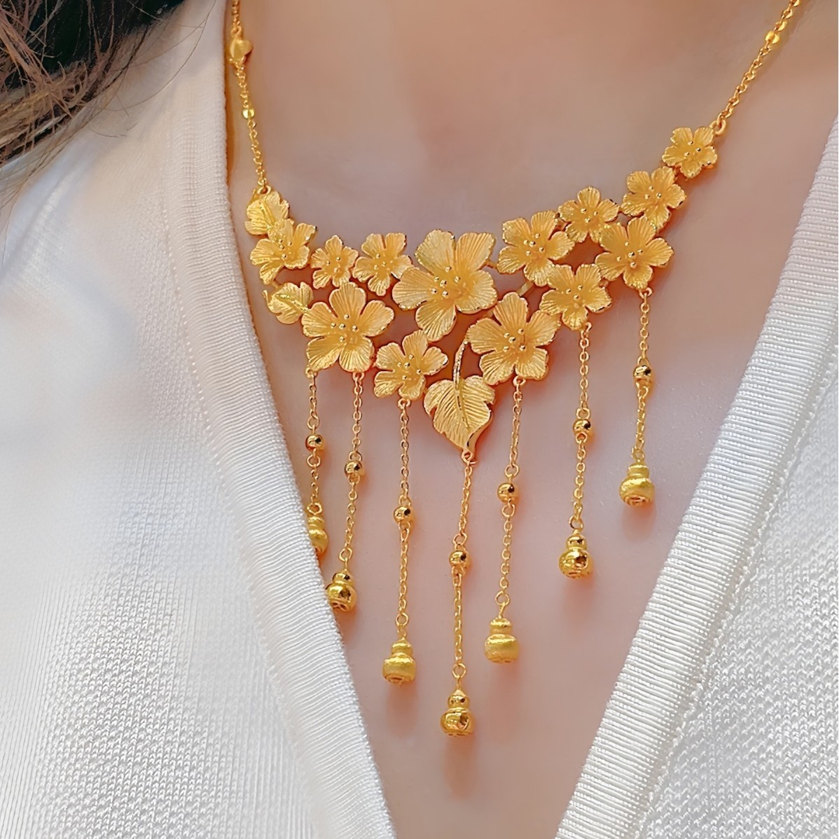 新款时尚繁花似锦葫芦花项链女款仿真黄金项链花朵流苏结婚三金