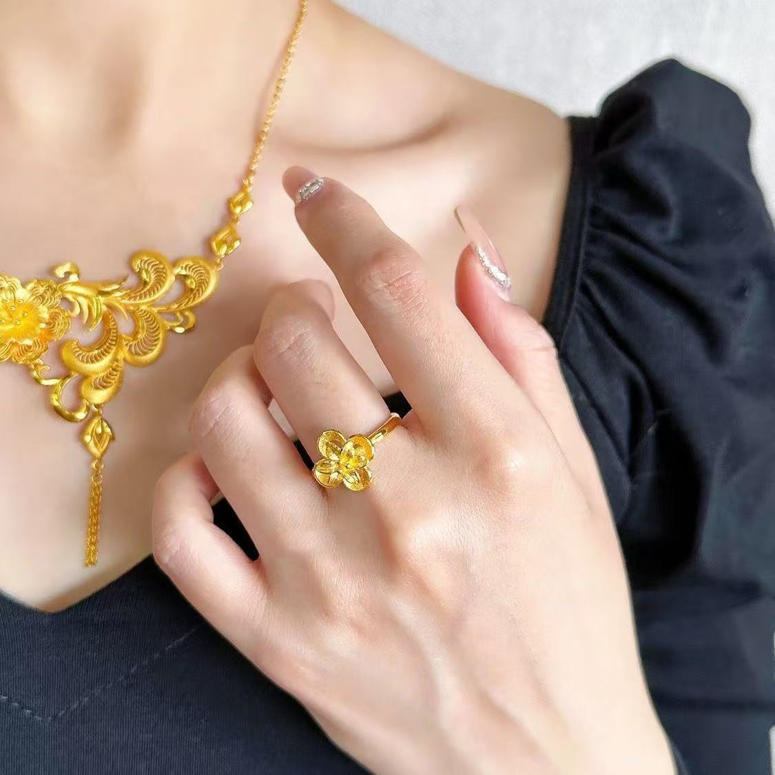 黄金色蝴蝶繁花似锦套链仿越南沙金婚庆花朵流苏项链婚嫁三金首饰