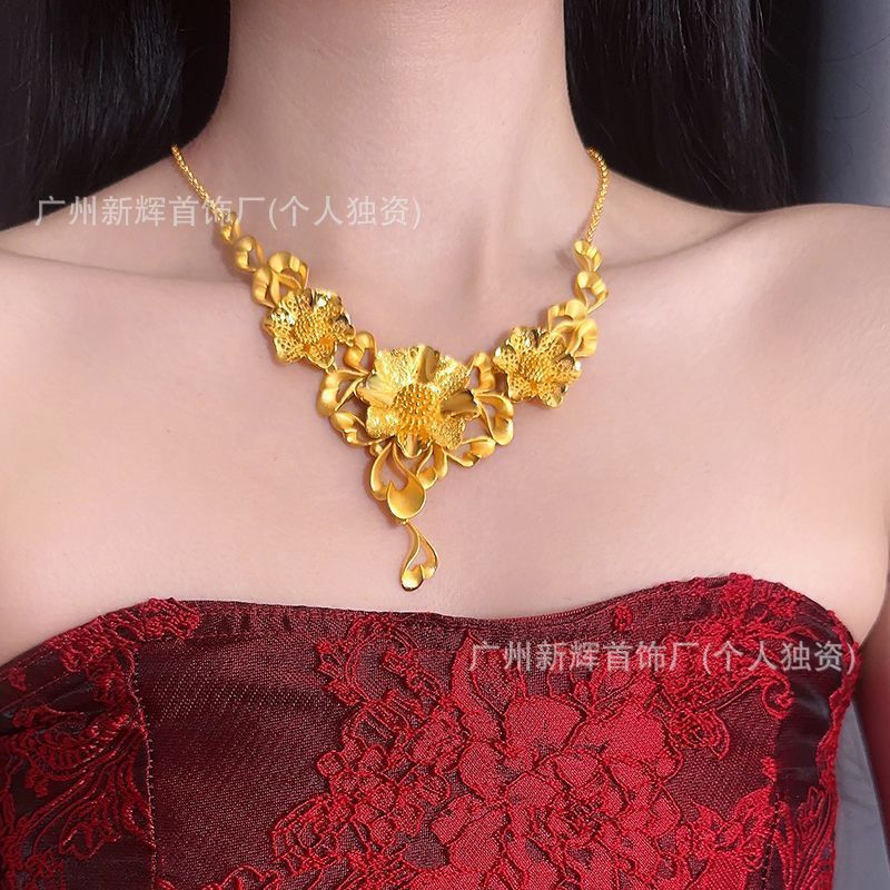 越南古法沙金新娘婚庆吊坠繁花似锦流苏项链时尚高级结婚用品
