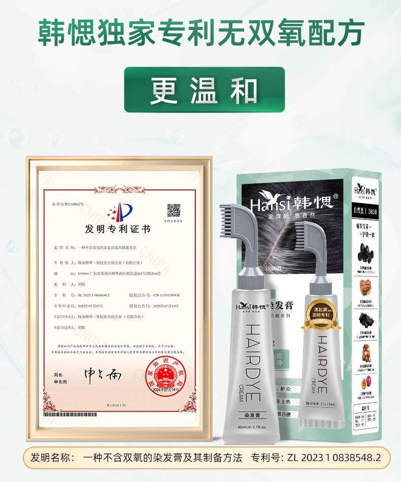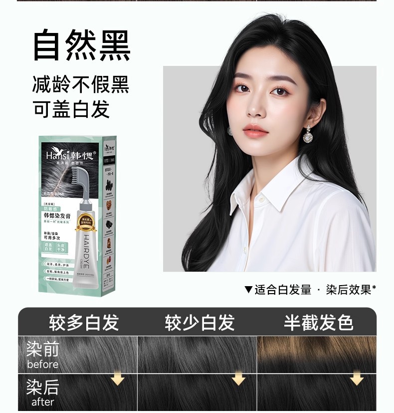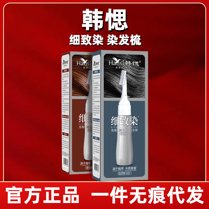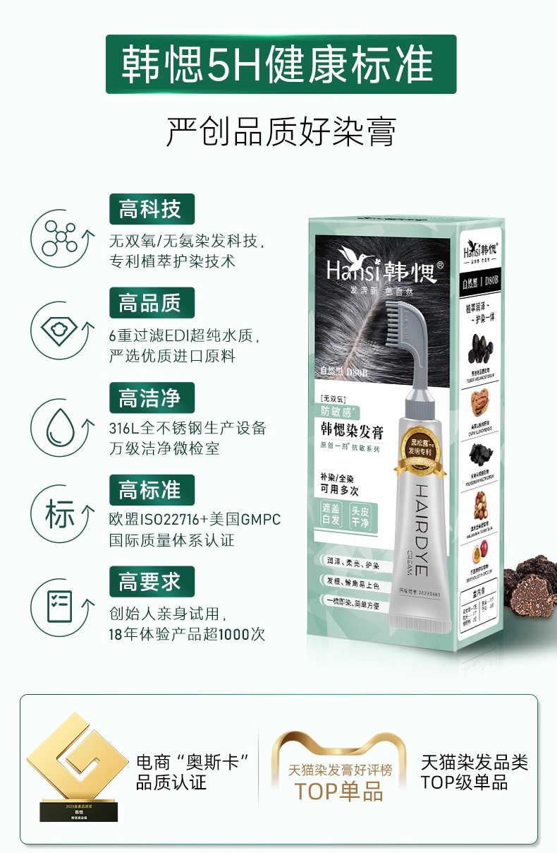 韩愢染发膏染发剂植物纯盖白细致染男士专用染黑色染发梳官方正品