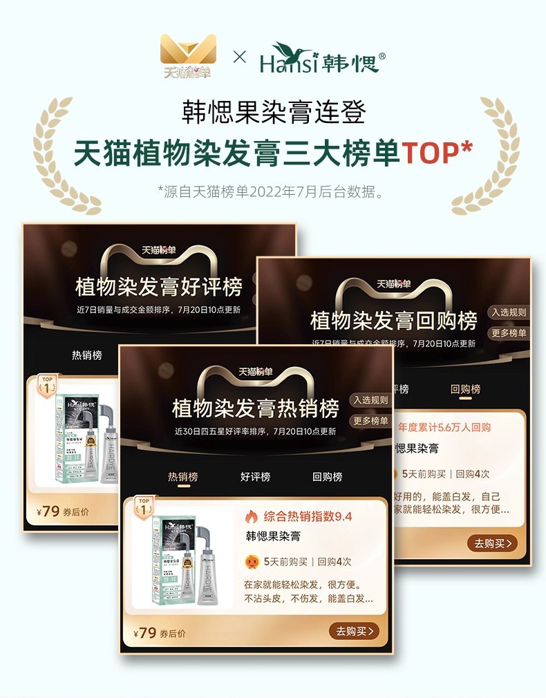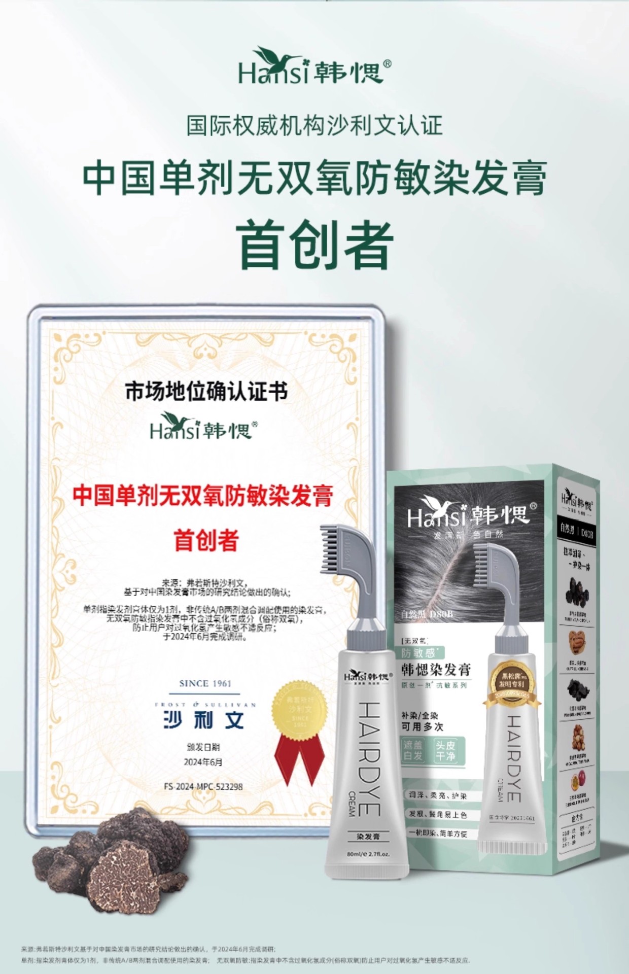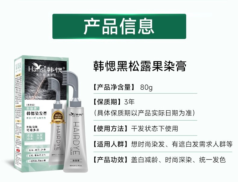 王姬代言韩愢植物黑松露果染膏染发膏一梳黑纯遮白韩思天然染发剂