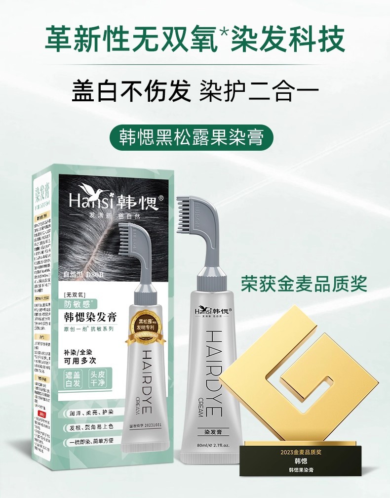 韩愢染发膏黑松露植物萃取果染膏发根鬓角发梳补染盖白便携式染发