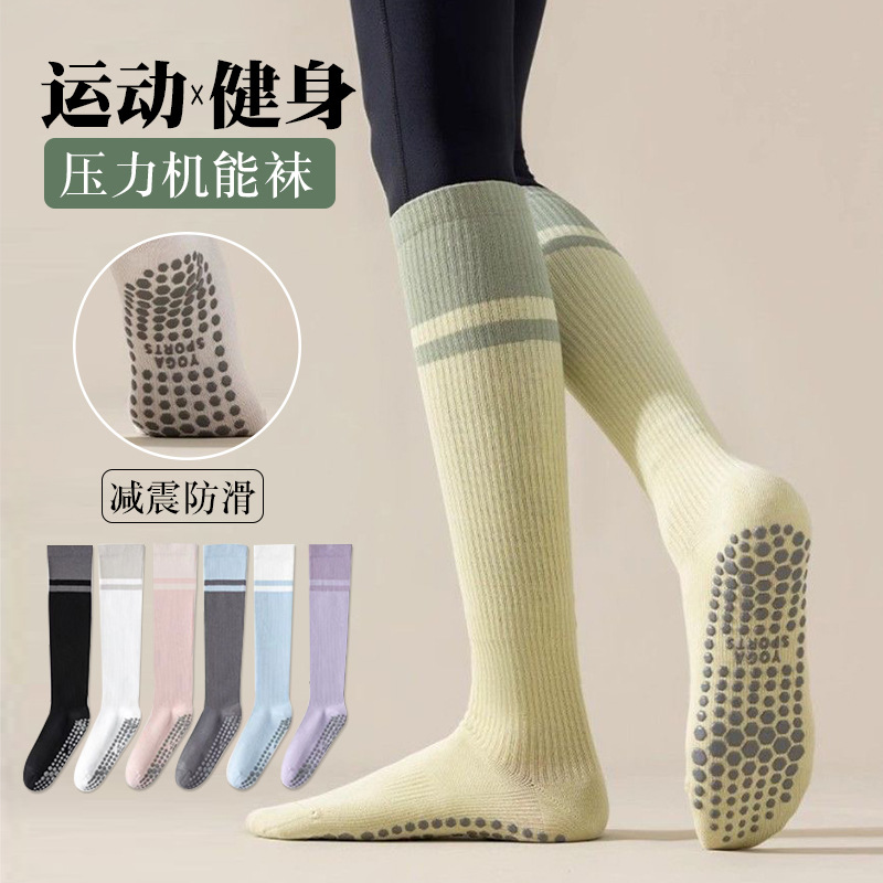 新款专业防滑瑜伽袜普拉提袜小腿袜女子中长筒运动袜纯色地板袜子