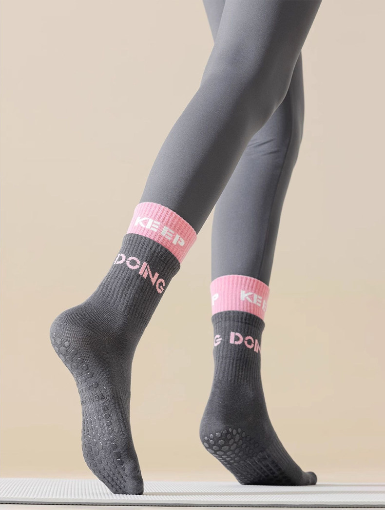 プロ仕様ヨガソックス 滑り止め レディース ミドル丈 プラティ ヨガ 室内運動 フロア フィットネス 縄跳び ロングソックス 卸売